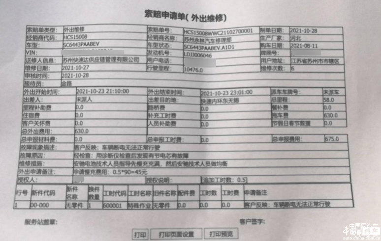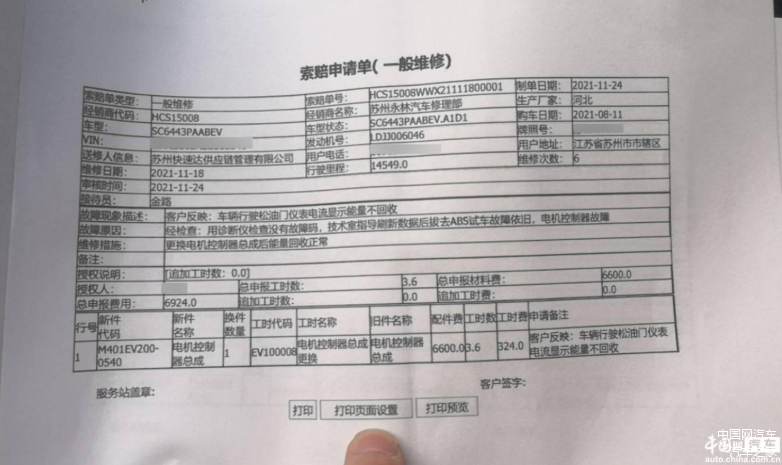 “除了电池没换,其他都换过了,电机控制器总成问题,电机总成问题……”卢先生表示,“(2021年)8月中旬购买的车辆,开回来却是一直在修。”