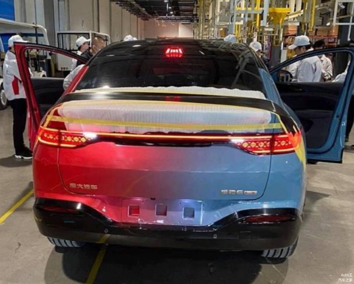 此外,让人惊讶的当属这款车使用了渐变色的配色,车身左侧为红色,而从中间开始渐变为蓝色,风格十分独特。比较遗憾的是,此次拍到的恒驰6 LX只露出了尾部,所以实车前脸长什么样暂时依旧未知。