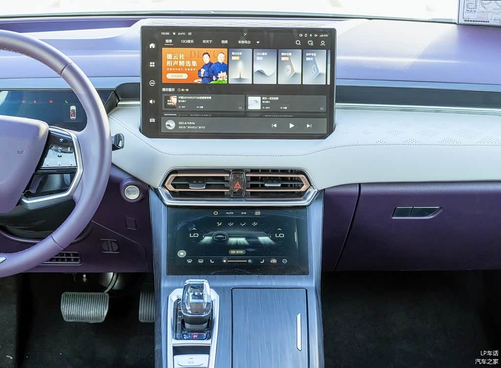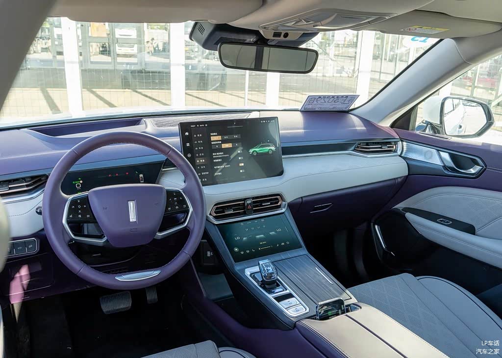 内饰方面,拿铁DHT走的是简约科技路线,新车取消了很多实体按键,甚至还淡化了仪表盘的存在感,带来了前卫的人车交互体验。同时新车到处都是做工很好的真皮包裹,几块大屏幕看起来也很有“科技感”,车机系统的操作逻辑也比较出色。我们看到的是紫白配色方案,另外还有动感黑、哑光米、咖啡棕。