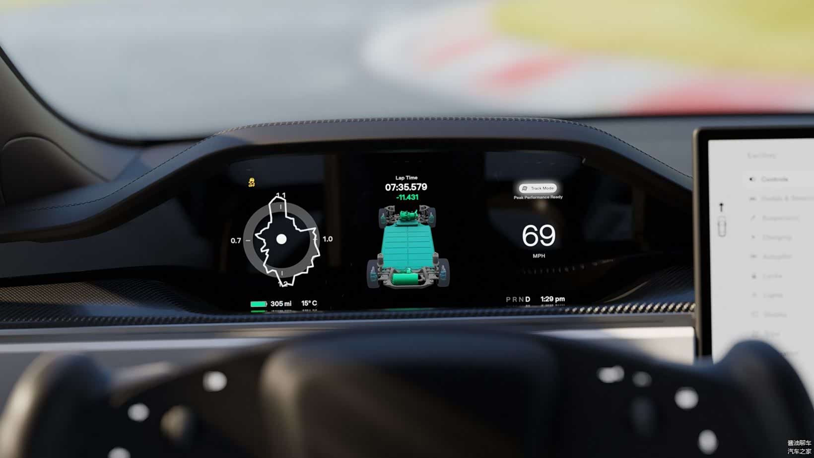 从技术上来说,Plaid Track Mode的实现,依赖于特斯拉的三电机平台和1,000多马力的阀门,控制动力总成冷却、横向扭矩矢量、自适应悬架阻尼,带来贴合赛道的驾驶体验。就其核心特点而言,特斯拉设计了一个以赛道为中心的用户界面,提供关键性能数据,包括车辆热量监视器、单圈计时器、G-meter、行车记录仪视频捕获和车辆遥测,以及其他可定制选项。这个模式模式旨在提高驾驶员信心,同时允许驾驶员更好地控制和调节车辆。