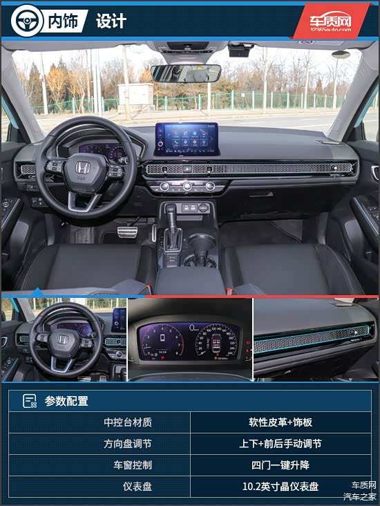 舒适性方面,本田在座椅设计上还是十分独到且深受消费者喜爱的,座椅内部填充物较厚,柔软度也不错,坐垫对腿部的支撑性也到位,驾驶员乘坐起来较为舒适。此外,头顶上方配有电动天窗,略有可惜的是,仅顶配车型才配备可开启全景天窗。