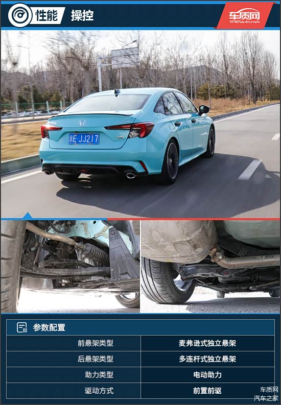 广汽本田型格悬架采用前麦弗逊式、后多连杆式独立悬架组合,底盘整体调校有着不错的整体性,在经过颠簸路面时,减震器过滤得较为充分,经过沟沟坎坎时也能起到一定抑制。