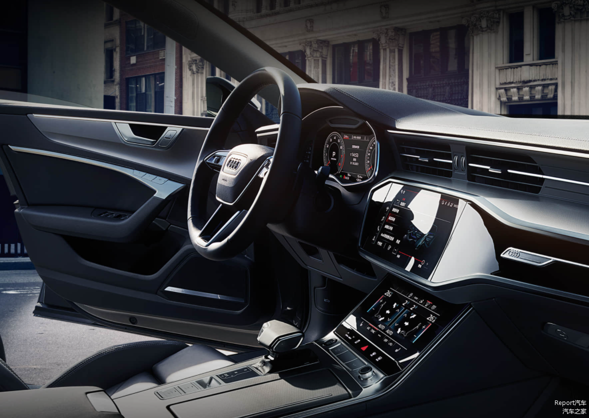 内饰方面,奥迪A7采用的是三屏联动的设计,虽然是分体式的,但不管是视觉感官上还是操作实用性上,这个布局模式都相对更为出彩。再加上这个真皮的座椅和真皮的方向盘,整车内部的豪华感也营造得蛮到位。