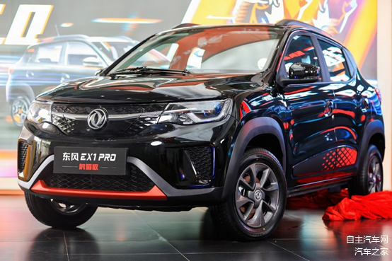 东风EV新能源EX1 PRO是一台价格比较亲民的电动小车,不到5万的起步售价让新能源汽车变得触手可及。 东风EV新能源EX1(图片 | 参数 | 询价) PRO提供了虎曜版本外观,这个版本使用了大胆的红黑配色,限量发售1000台。