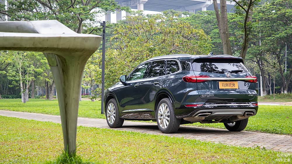 昂科旗的尾部设计饱满,LED尾灯加上贯穿式的镀铬饰条与前脸的造型相呼应,双边双出额排气气势感十足,尾部的设计与整车一脉相承,展现出稳重、大气的风格。