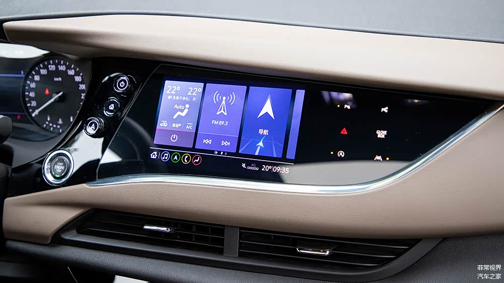 昂科旗在豪华感的营造上同样延续到了内饰中,环抱式的中控样式有着极强的设计感,流畅的中控台线条配以大量的软性材质包裹,内饰豪华的氛围油然而生。