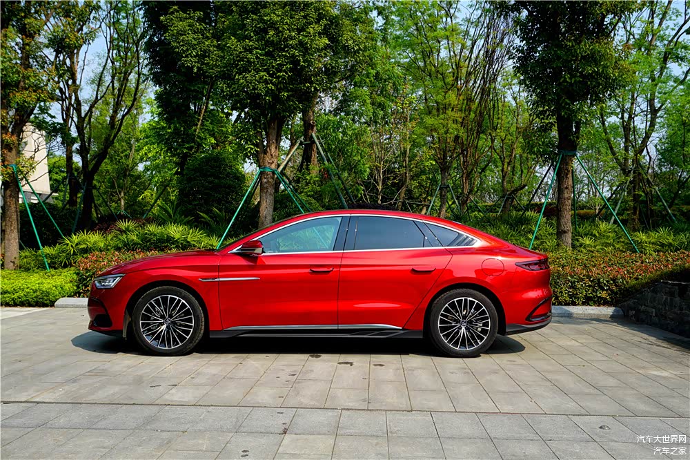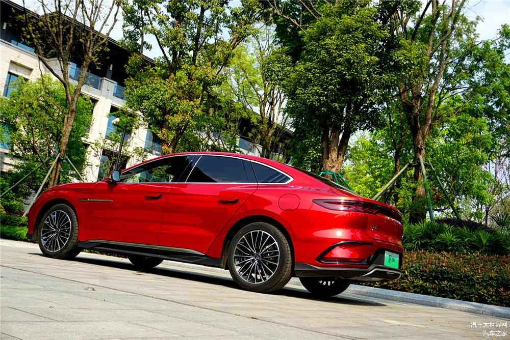 车尾部分最大的设计亮点来源于这条贯穿式尾灯,区别于原来汉系列的车型,融入了“中国结”的中式美学元素,夜晚点亮后的效果十分柔美,具有非常高的辨识度。