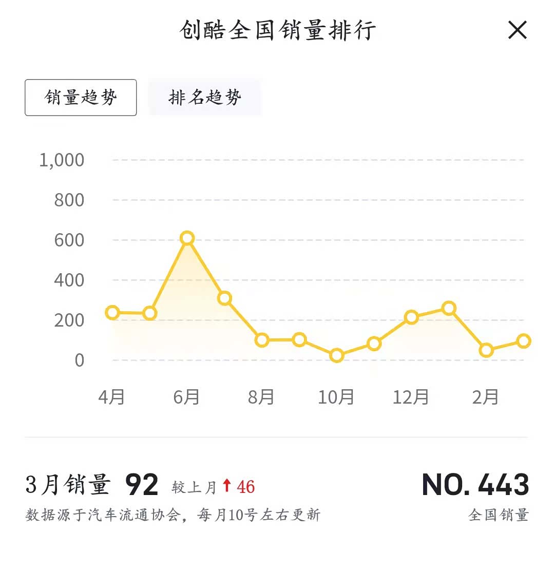 3月份创酷仅卖出了92台,可以说销量惨淡,和其全系仅提供三缸机有很大关系,重回四缸机阵营无疑使得创酷的竞争力有所增强,但能否取得令人满意的销量,还需要市场来进一步检验。未来新车将要面临的竞争对手包括本田缤智/XR-V、大众途铠/探影、丰田C-HR等。作为参考,现款创酷的售价区间为11.89—13.99万元,换装1.5T四缸动力之后,其价格势必会有所提升,笔者猜测起售价会在13万元左右,大家觉得呢?(文/舒心)