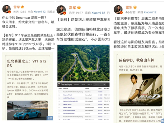 而掌舵人雷军,也在通过自己的方式进入车圈,试图讲好一个有趣的汽车故事。不信你看,就在雷军的近期动态中,跑车、赛道、汽车电影,应有尽有。