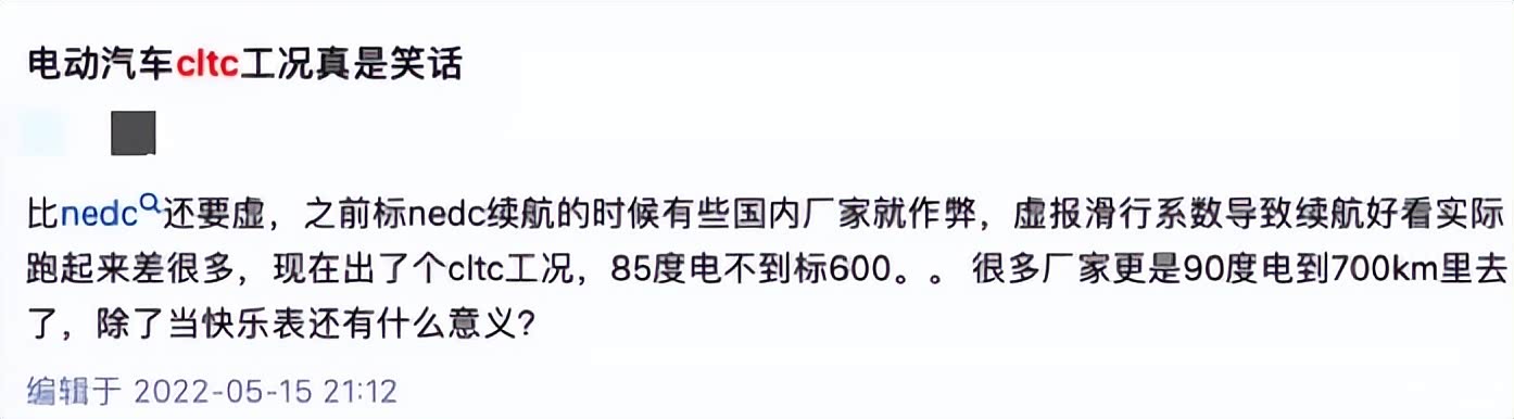 CLTC去年还没实施就被吐槽,如今吐槽更多了——平时车友群里如果提到哪款车的续航超过七八百公里了,绝大多数车友的关注点都会是这肯定是CLTC工况了,虚得很,别信。