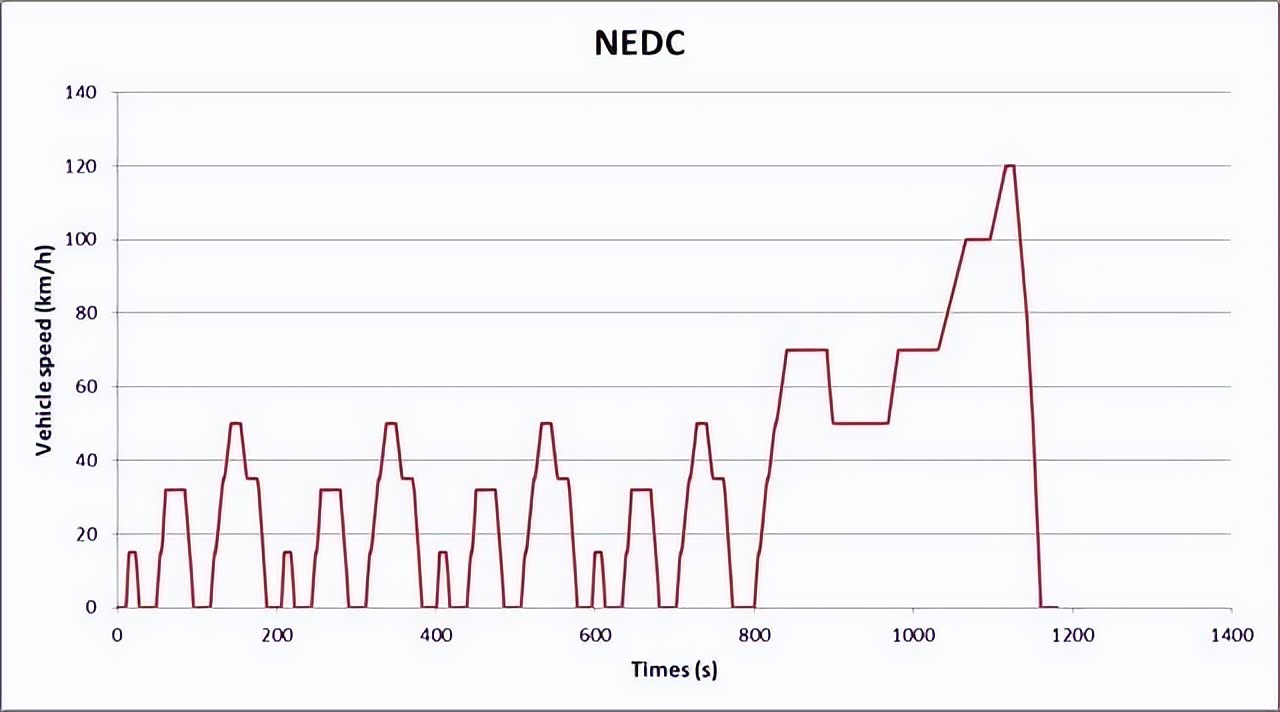 NEDC工况有五段测试循环,包括市区工况、郊区工况和高速工况,主要通过车辆在台架上模拟真实行车场景而得到结果。