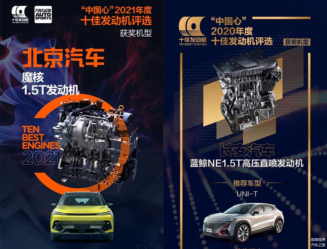 不得不感叹中国品牌发动机技术近年来的长足进步,在2021年的“中国心”十佳发动机评选中,中国品牌自主研发的发动机就占据7个席位,其中就有北汽魔核动力1.5T的身影,同时北汽的7速湿式双离合变速器还获得了龙蟠杯”世界十佳变速器的称号,可谓是双十佳动力总成。在本文的另外一位主角长安的蓝鲸动力1.5T发动机则出现在2020年度的获奖名单中,这两套动力系统可以说都是中国品牌自主研发发动机的佼佼者。