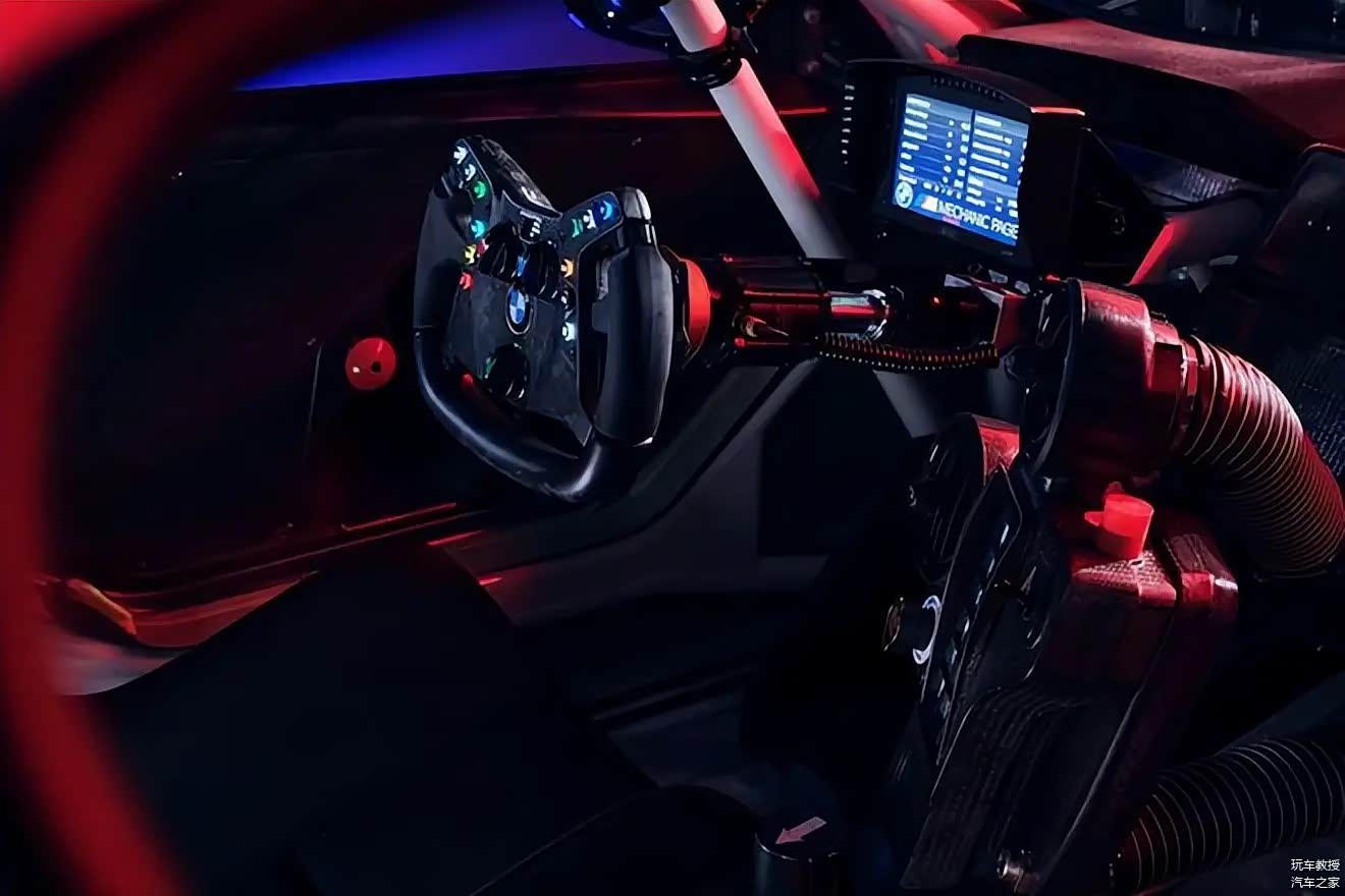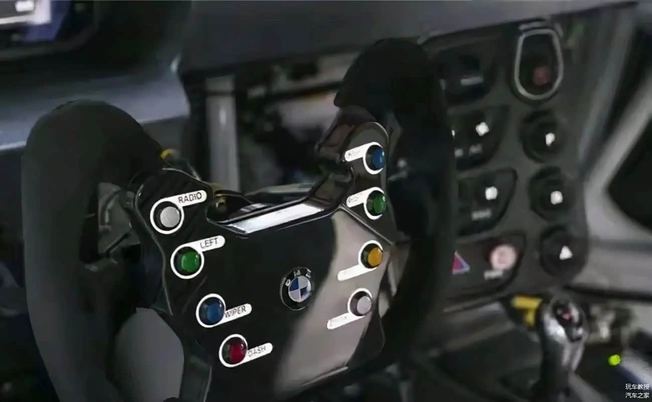 进入车内,战斗氛围感会更加浓郁,相比于量产版的M4,M4 GT4进行了彻底的赛车化改造,新车装备了FANATEC GT4多功能方向盘和专业RECARO通风赛车桶椅和电控设备,后排还有提高车身强度和安全性能的防滚架,舒适性想必不用多说,完全是为了赛道而生的,开这玩意跑一下长途不得患腰间盘突出。