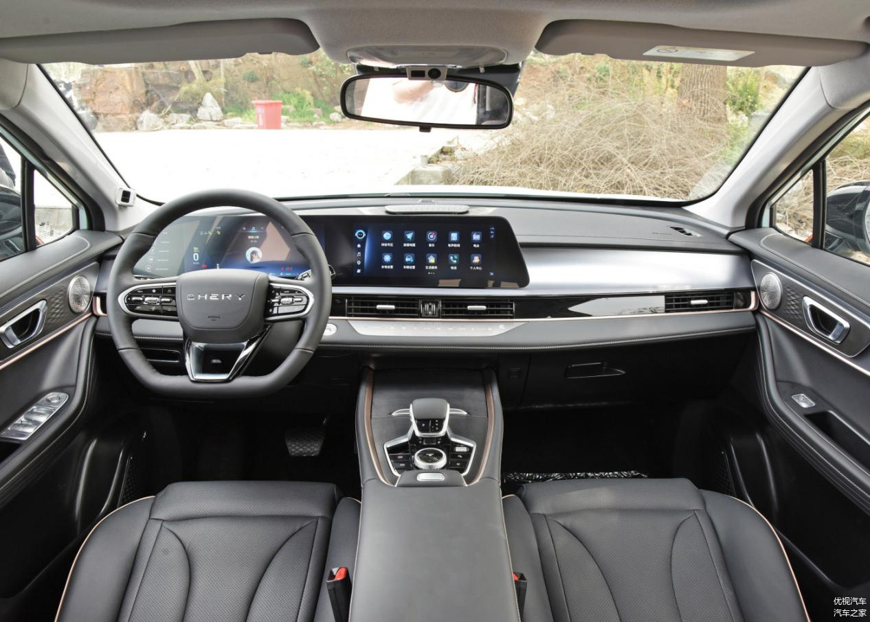 在车尾部分,奇瑞欧萌达尾灯组内部采用了数列排布的灯源组成,点亮之后具有极高的辨识度,中间的“CHERY”字母标识,一定程度上提升了几分品牌辨识度,下方镀铬装饰的双边双出排气布局(排气其实隐藏在车底),从而增强了整体的运动感。进入车内部分,奇瑞欧萌达采用了最新的家族式设计布局,并还采用了当下流行的双联屏设计,看上去显得十分的高级,搭载的Lion 5.0 AI智慧座舱,具有人脸识别、语言交互、远程控车等多种功能。值得一提的就是,由于该车溜背式的设计加上车身尺寸的缘故,所以车内后视镜视野并不是很开阔,但是在用料方面,奇瑞欧萌达不管是做工还是用料方面都较为扎实,三幅式的平底多功能方向盘,加上大面积皮革材质的填充,以及镀铬饰条的装饰,从而使其营造出了一种舒适且科技的内饰氛围。