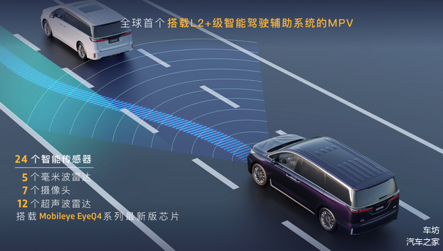 与此同时,在L2+智能驾驶辅助系统的加持下,这款MPV拥有APA全场景自动泊车系统、RPA远程遥控泊车统、TLC触发变道、360超清全景影像+透明底盘等在内的26项高级驾驶辅助功能,可以大幅减轻驾驶者的驾驶压力,亦能提升行车安全性。
