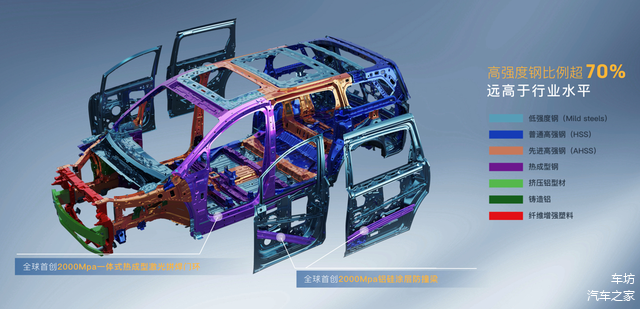 安全性方面,这款MPV采用了2000MPa一体式热成型激光拼焊门环、2000MPa铝硅涂层车门防撞梁以及贯穿式铝制门槛加强梁(门槛内),在被动安全方面相当周全;还有防热失控及热成型电池防护系统,可以确保三电系统的安全性。