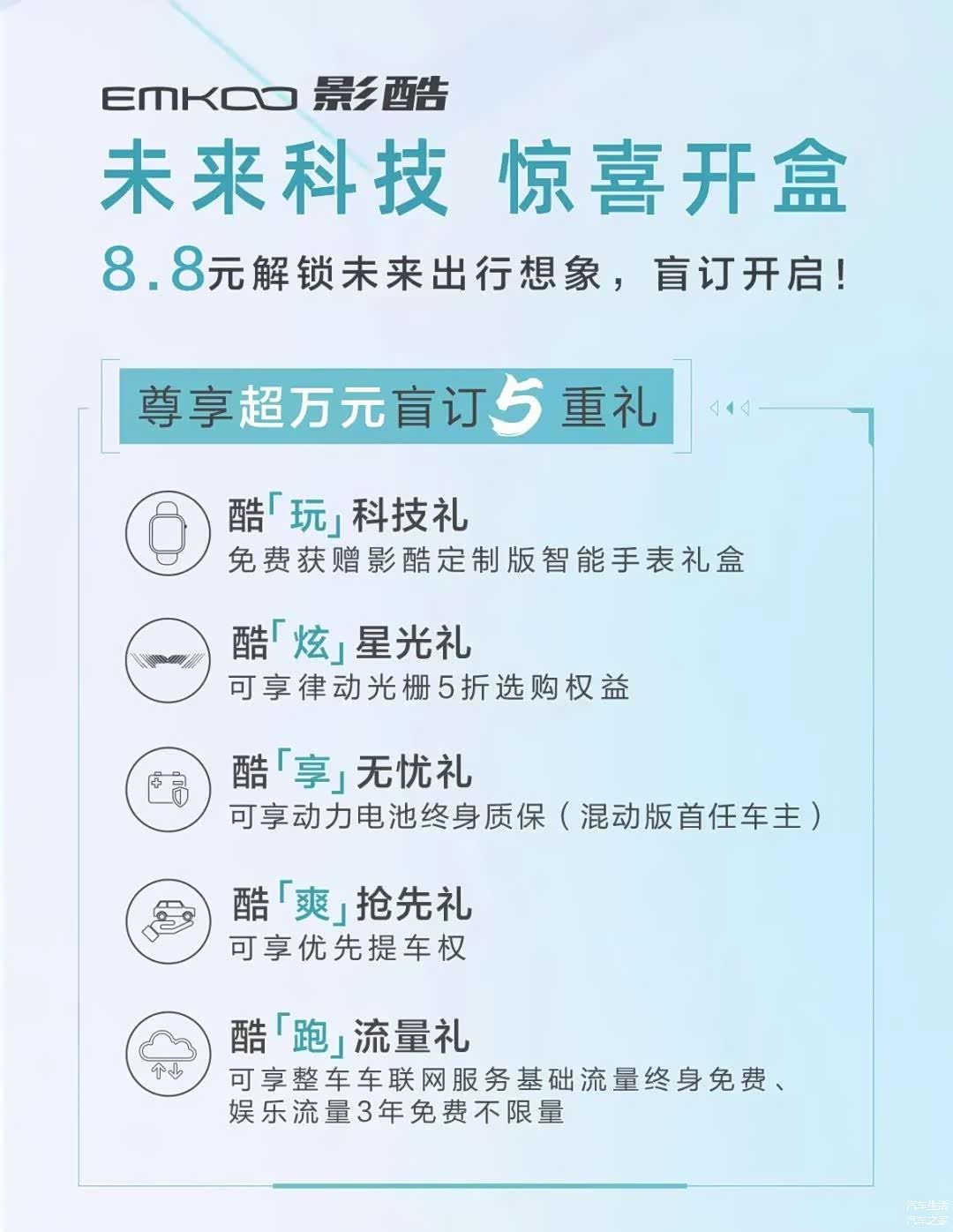 所以,今天开启盲订完全就是广汽传祺对影酷产品实力的高度自信。并且在正式预售之前,在官方指定渠道下订,就可享受包括“电池终身质保”在内的多重盲订礼。