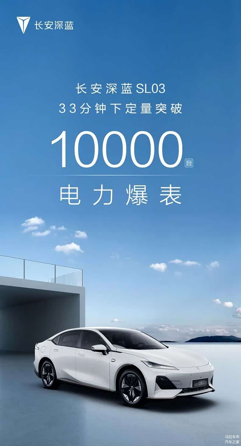 不出所料,长安深蓝SL03自7月25日晚正式上市后便广受好评。同时,作为长安汽车全新打造的“数字纯电品牌”长安深蓝之首款车型,其仅用了33分钟的时间,便取得了下订量成功突破10000台的佳绩。