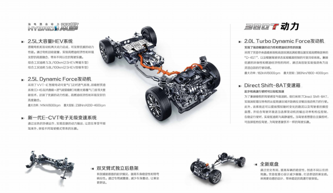 修不好的XX,开不烂的丰田,这句话在汉兰达身上体现的淋漓尽致,它的三大件就是灵魂所在,你买的时候是什么样,开几年后还是什么样,全新第四代汉兰达380T首次搭载进口TNGA 2.0T发动机,匹配Direct Shift-8AT变速箱,最大功率182kW,峰值扭矩高达380N•m,动力表现较第三代汉兰达2.0T车型全面提升,综合工况油耗仅8.7L/100km,兼顾了实用性与节油性。