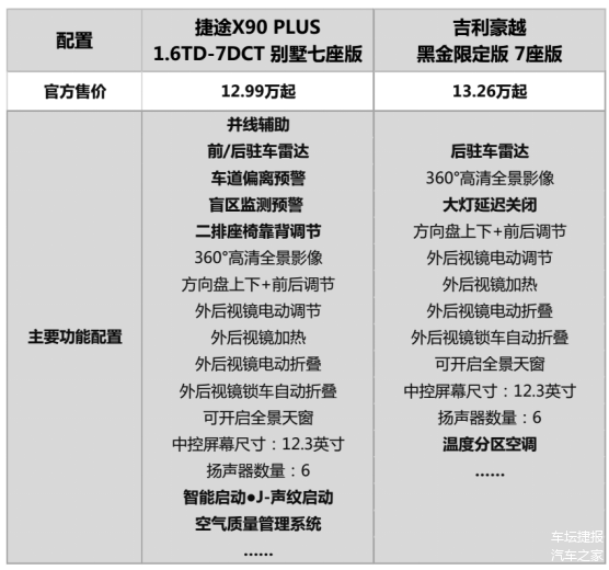 随着二胎政策的全面普及,大家对汽车空间的需求也在逐步提高,如果说一台10万级的SUV既能满足大家庭出游,又能在动力、配置上有出色性价比,那岂不是美滋滋?别说,这样的车在自主品牌中还真有,今天要给大家推荐的捷途X90 PLUS与吉利豪越就是其中代表,到底谁才是让全家人都满意的欢乐座驾?看完你就知道了。