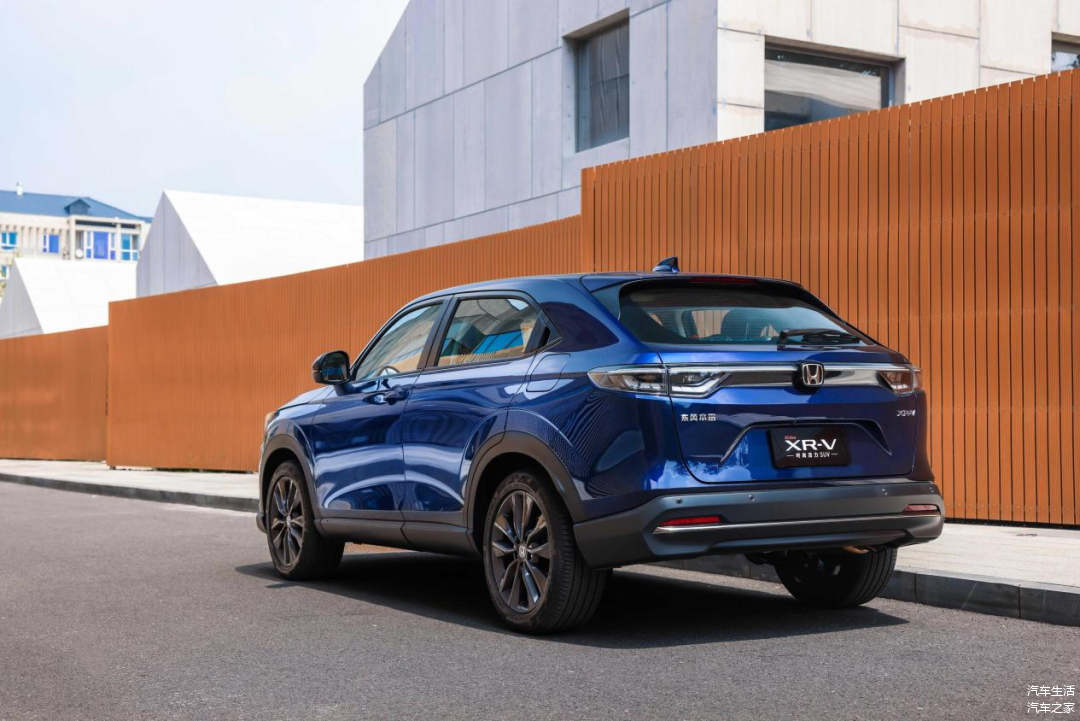 车身造型上仍然简洁,一条腰线从前部贯穿到后部,增加了很多力量感。车身底部有一圈黑色塑料汽车边缘,全新XR-V尾部造型饱满圆滑,车顶配备鲨鱼鳍天线,配备多辐式铝合金轮毂,增加了野性和运动氛围。后排的门把手仍然是隐藏的设计,实际用处不大,但使车身后部看起来更加整洁一体化。