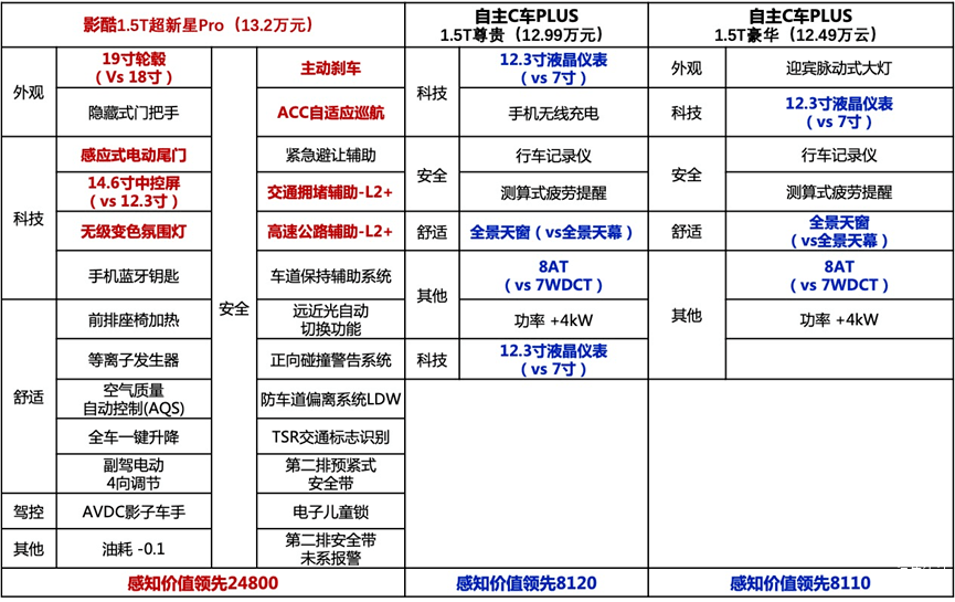 我们拿市面上同级别的热销车型进行横向比较,差距确实肉眼可见,影酷1.5T的预售入门版车型也一样有着碾压的实力。