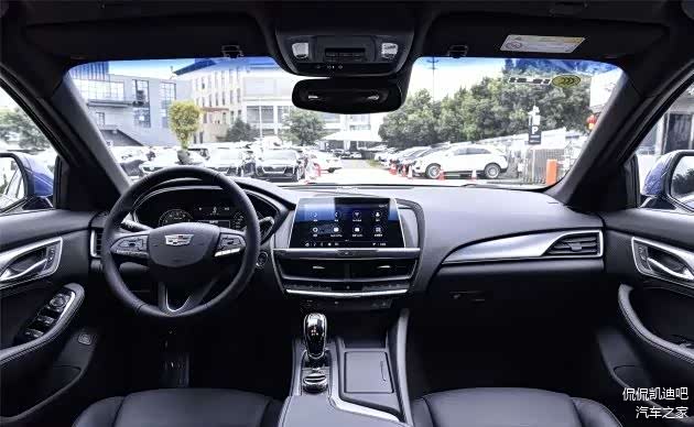 在内饰配置方面上,这款车的打造也是非常的简洁大气。配置绝 对是凯迪拉克CT5的强项之一,该车配备了可电动四向调节的皮质真皮包覆的方向盘,同时配备了方向盘加热功能。在环抱式的中控还有门把手等处,使用了大量的塑料,皮质材质覆盖和包裹,摸着手感平顺,配备一块10.0英寸悬浮式液晶触控屏,显示清晰且设计也比较潮流,前排还配备有双温区自动空调控制系统,自由调试最 舒适的空间氛围。座椅宽大,乘坐空间尚可,满足日常家用。