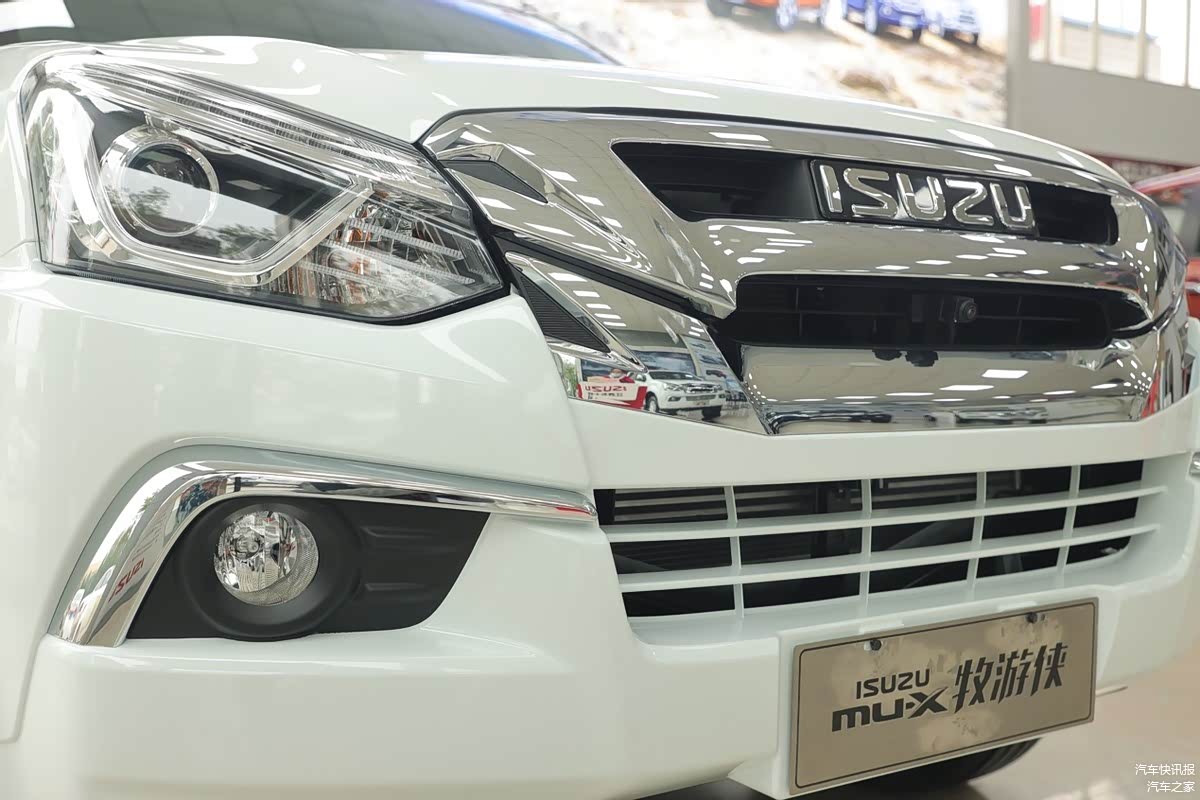 mu-X牧游侠采用的是犀利鹰式前脸设计,粗壮的镀铬饰条包围前进气格栅十分霸气,显得颇具有野性。两侧大灯样式也变的更加锋利,LED日间行车灯,全新犀利LED大灯,前脸精气神十足。与精致的城市SUV相比,牧游侠的身上更多一点的是经典与野性。