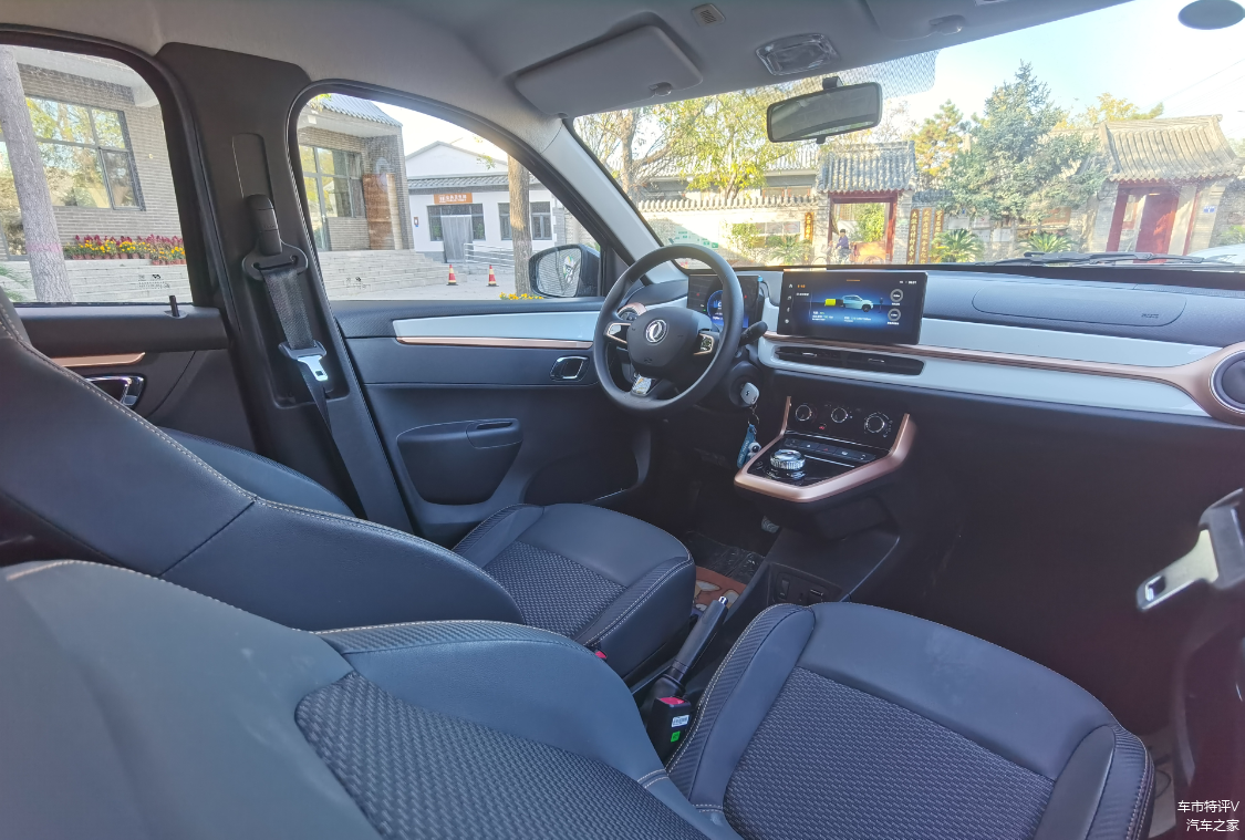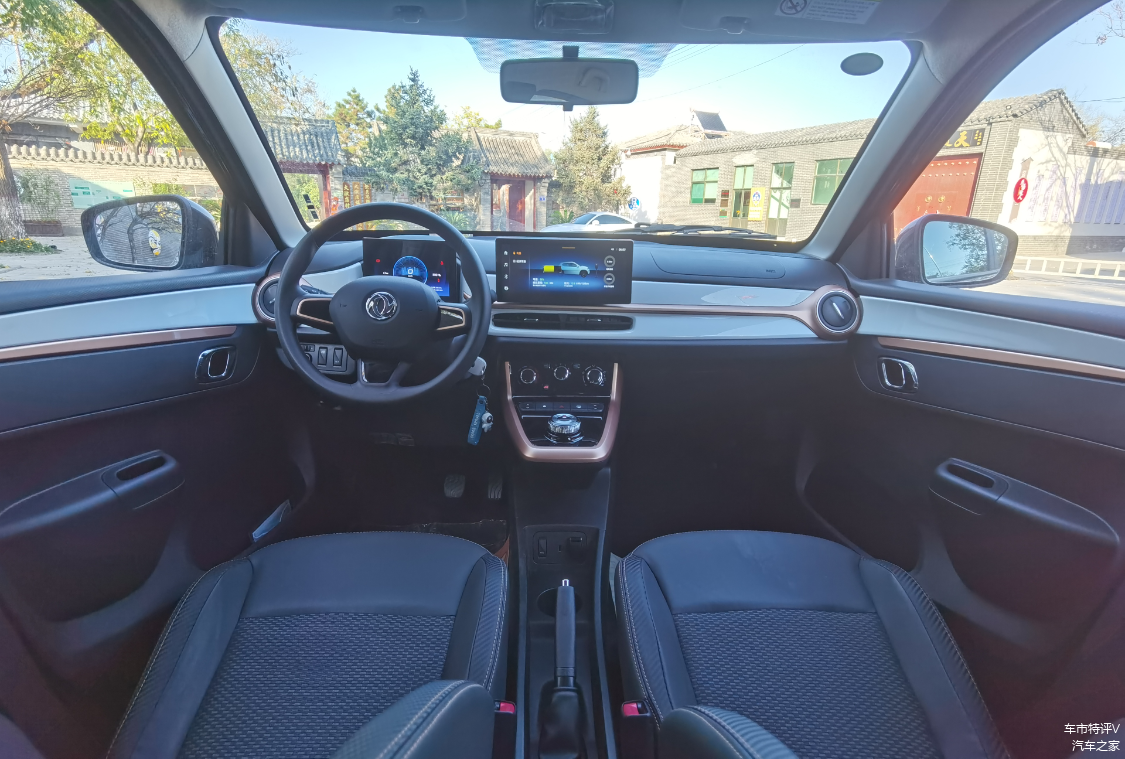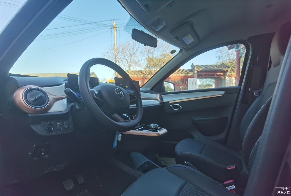 新车的侧面会让人想到东风EV的EX1这款小车,黑色轮眉更显新车野性,165/70 R14的轮胎不大不小,我们试驾的车辆轮毂是铝合金材质,而低配车型则是钢质轮毂。