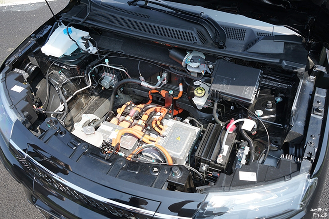 此外在车头还设计了充电口,在车里通过开关控制就能开启,它支持快慢充,因此有两个并排的充电口。