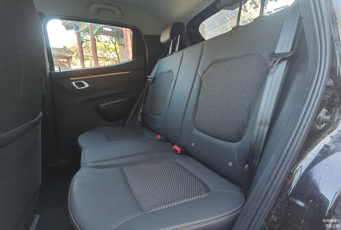 前排座椅空间表现不错,不管是头部、膝部和腿部都有不错的空间体验。调整好前排座椅后,不常用的后排空间就显得局促了不少(体验者身高178cm),如果身高175cm以下,体重不大的乘客体验感则会提升不少。