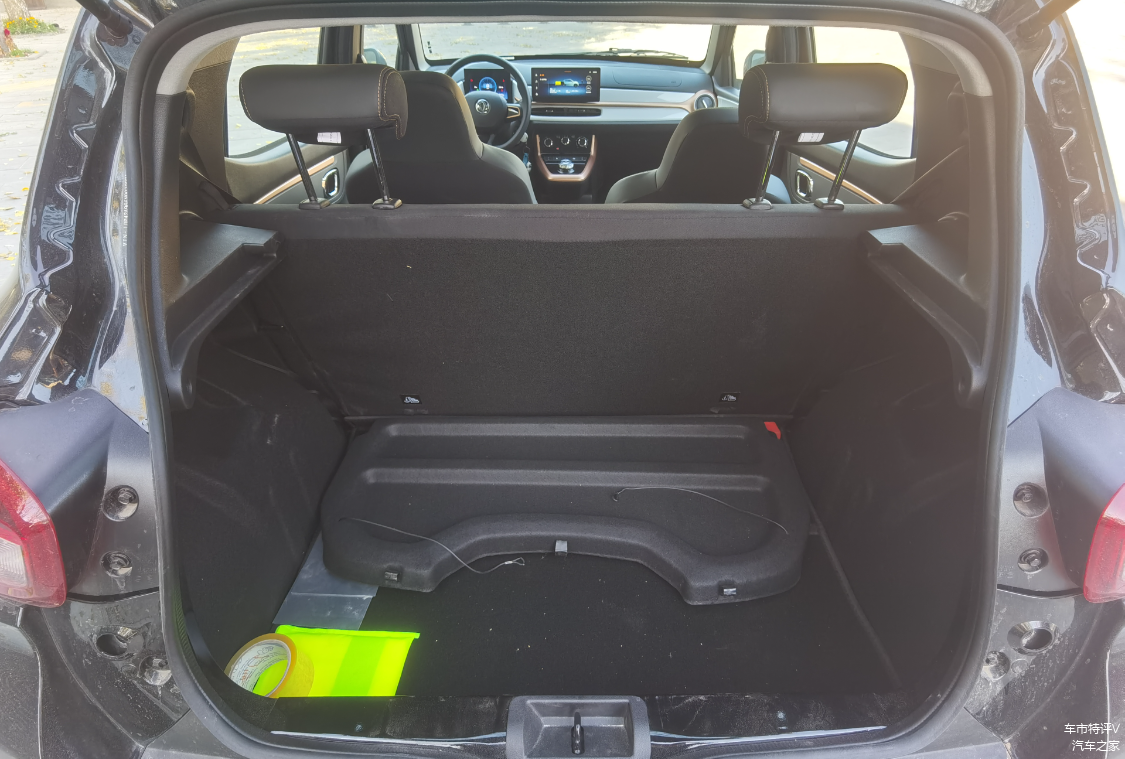 车内储物空间方面,纳米BOX就表现一般了,新车近前排车门配备了储物格和中控杯架,但手套箱以及后排车门储物并没有提供。行李箱方面基本够用,常规状态下后备箱容积为300L,后排座椅支持放倒,这样后备箱容积最大能扩展至1107L,作为一款以代步为主的小车,这样的表现已经完全够用。