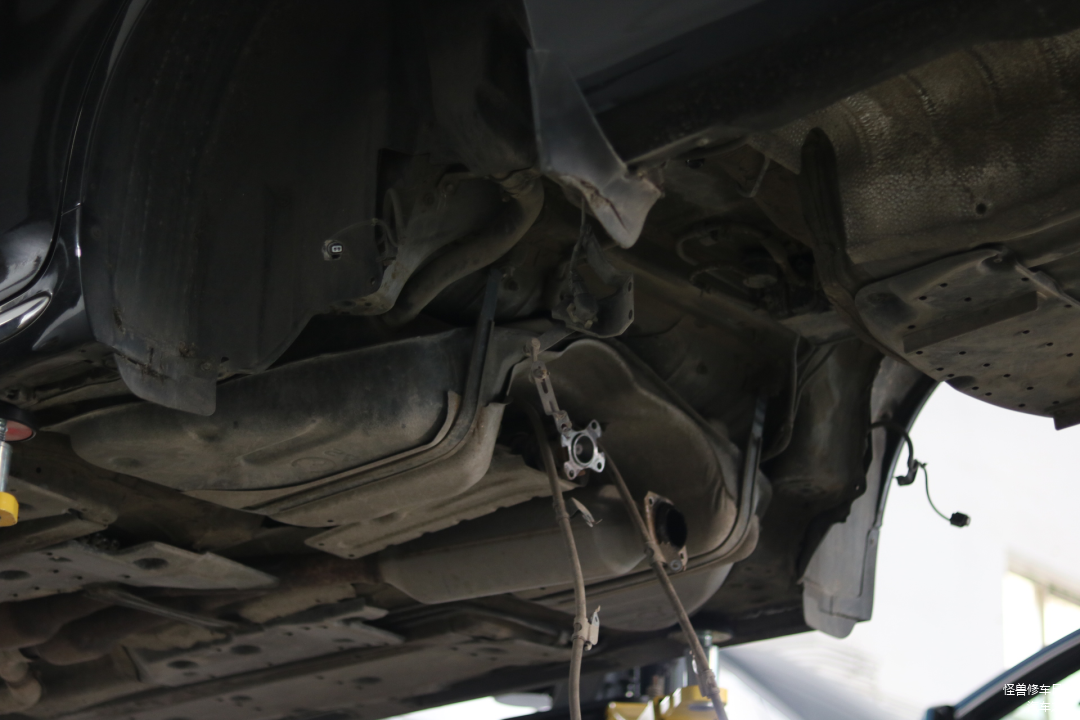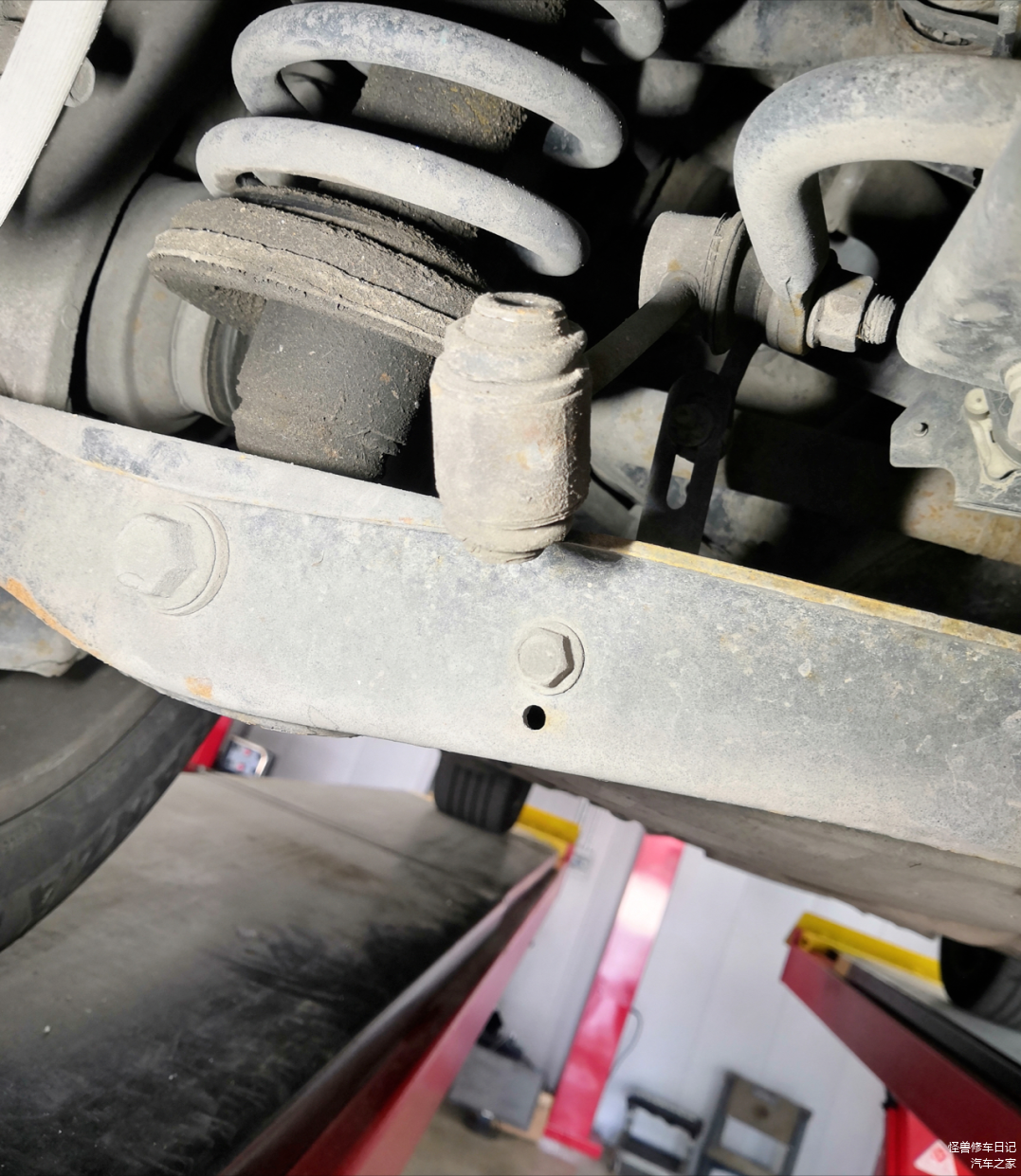前吊耳也是老化的状态,这车底盘看着挺惨烈的。