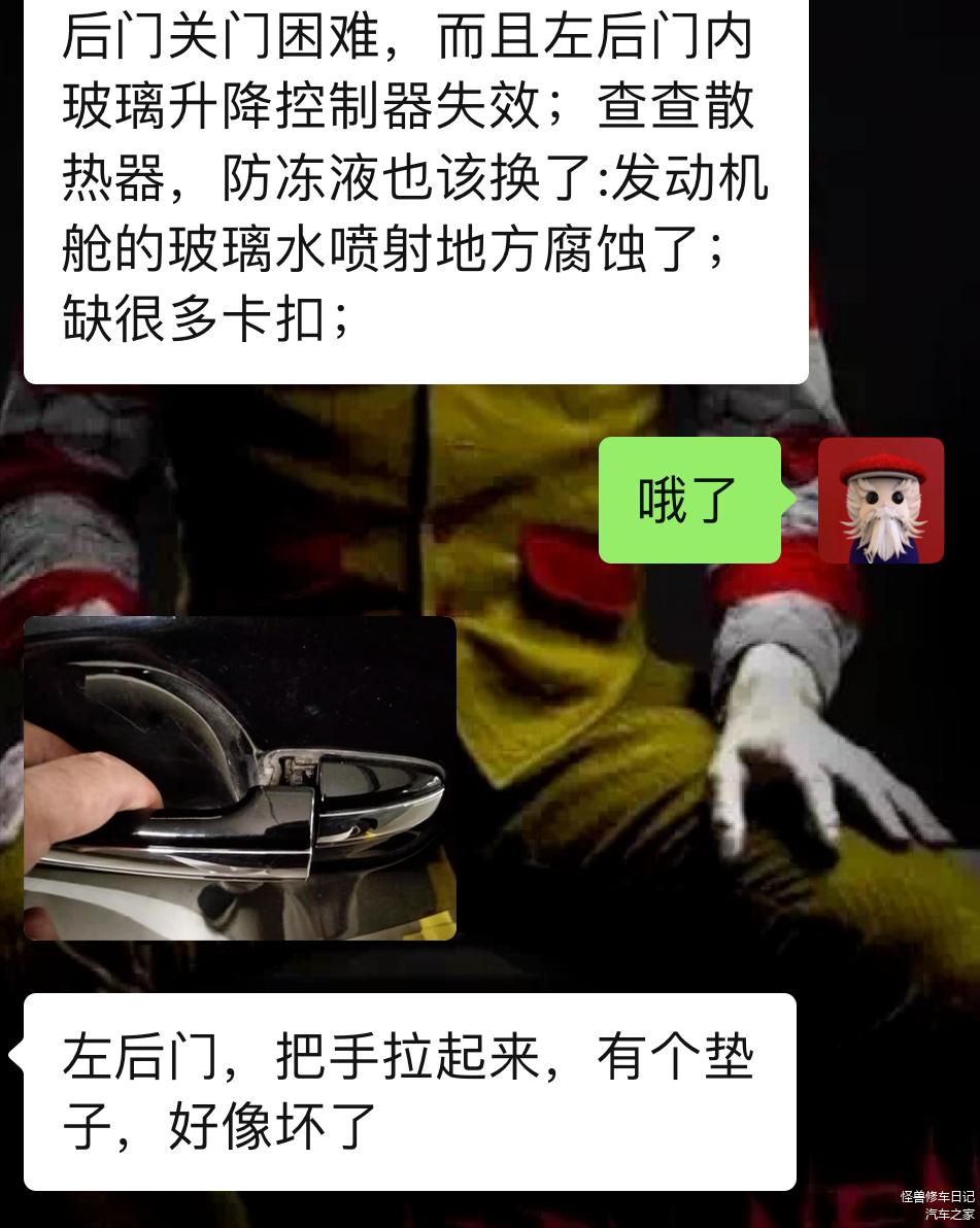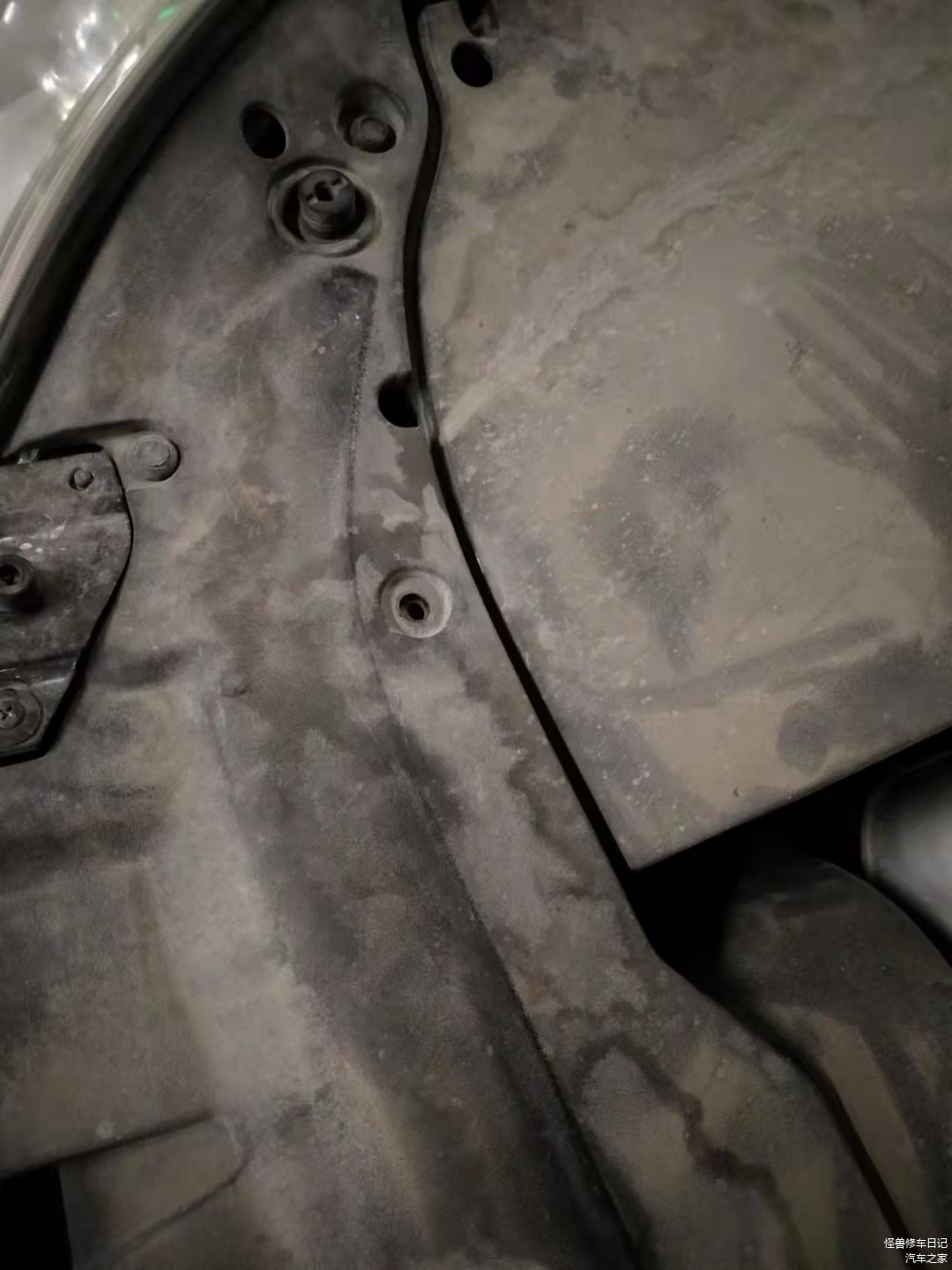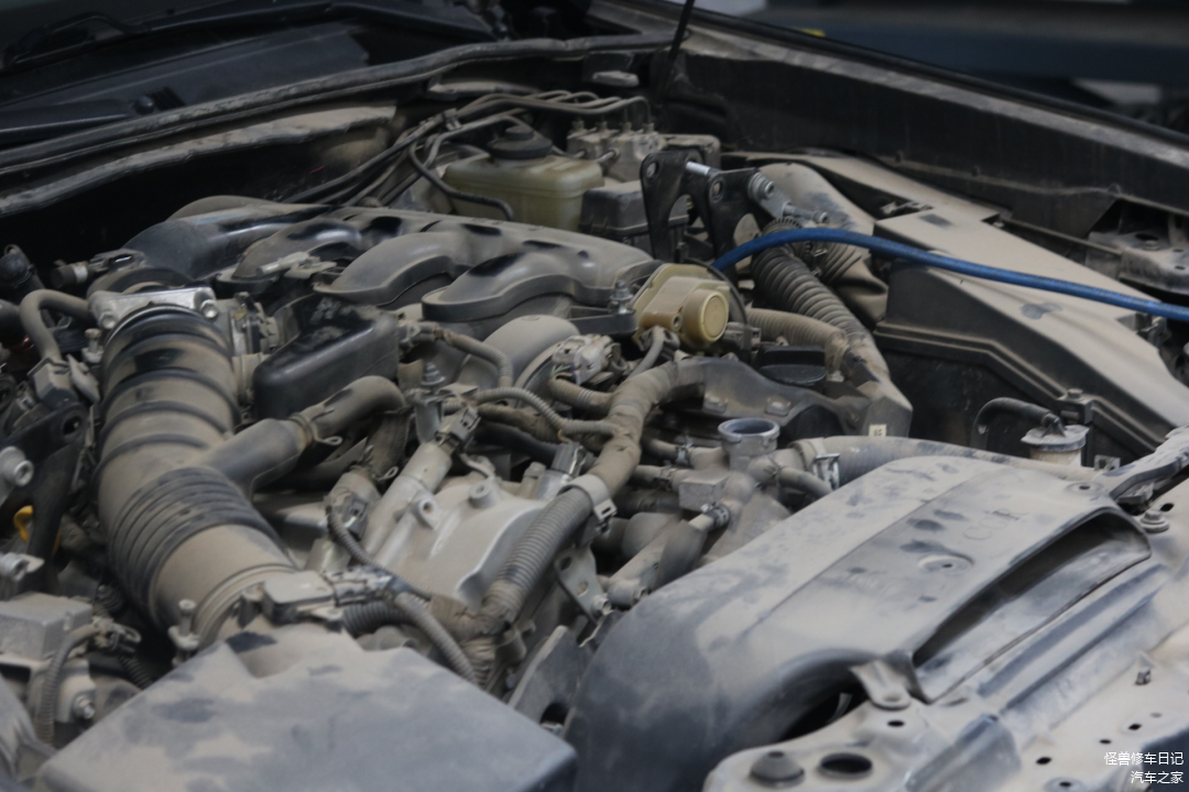 车子刚到厂,这车是2013年的,目前13万公里,打开机舱,满是泥巴,画面挺感人。