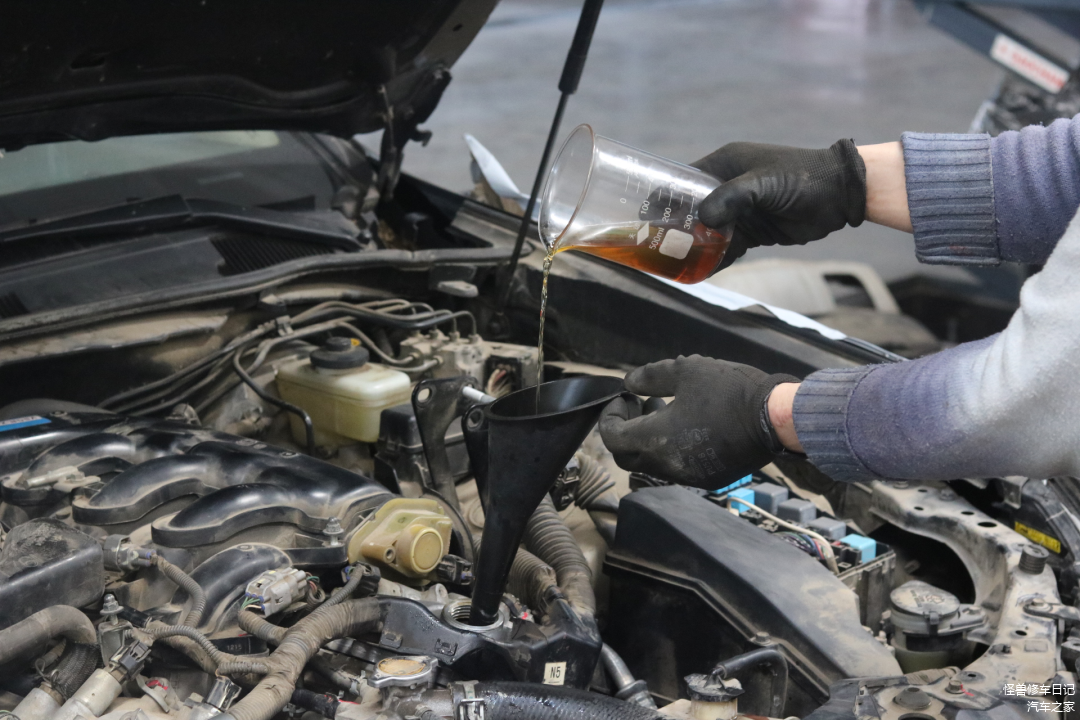 处理干净后,重新加入车主自备的新机油。