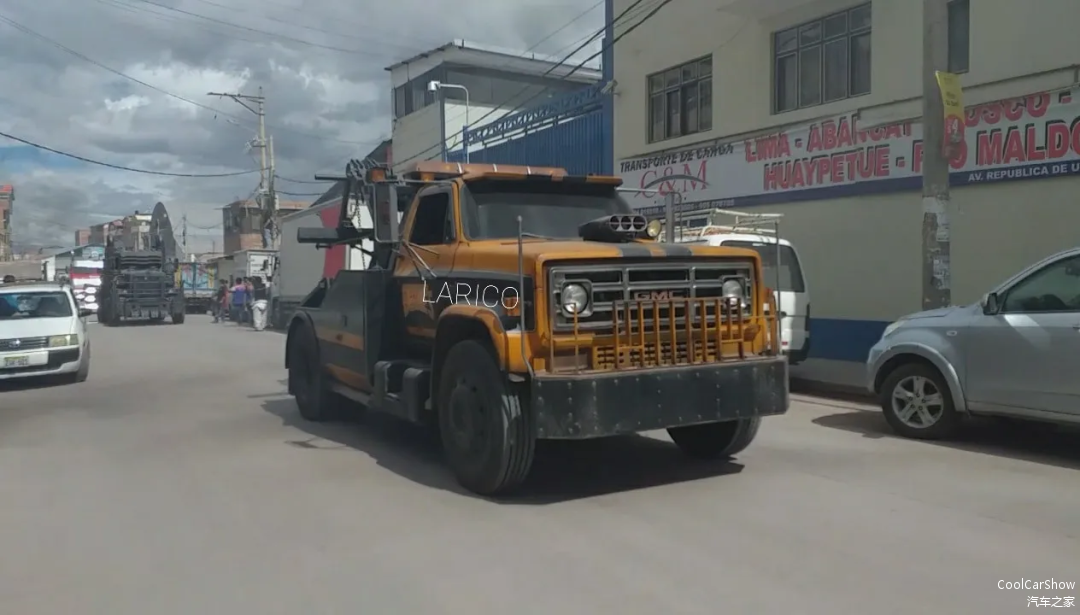 带黑色条纹的橙色GMC Topkick拖车,其真实身份是龙头部队的Battletrap拖斗,与擎天柱的老友铁皮同属一个车系,但年份更老。和龙头部队其他成员不同的是,拖斗的车身颜色更加鲜艳,这是意味着在片中将会弃暗投明?
