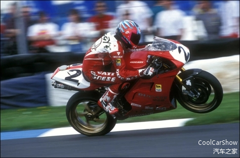 诞生于1994年的杜卡迪916,搭载四气门的90度L2双汽缸引擎,采用液压冷却,进气冲压和电子燃油喷射等技术,都是当时业界极为罕见的,在9000r/min时可输出108马力。凭着该车的出色发挥,打破了四汽缸称霸SBK国际赛事的神话,分别在1994年与95年连续拿下两届SBK世界冠军。