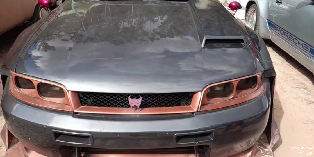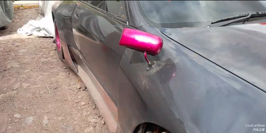 在改装部分,灰色的车身配有古铜色的车身包围,还有粉紫色的后视镜和轮毂作为点缀,目的就是呈现出反派该有的邪恶气息。