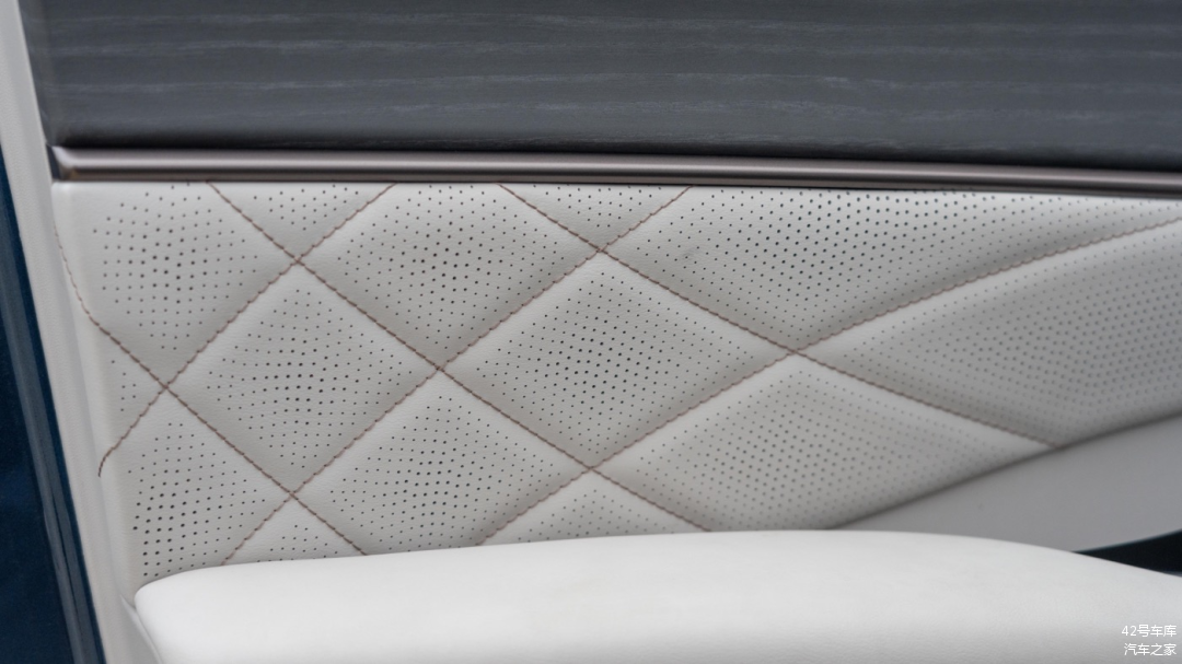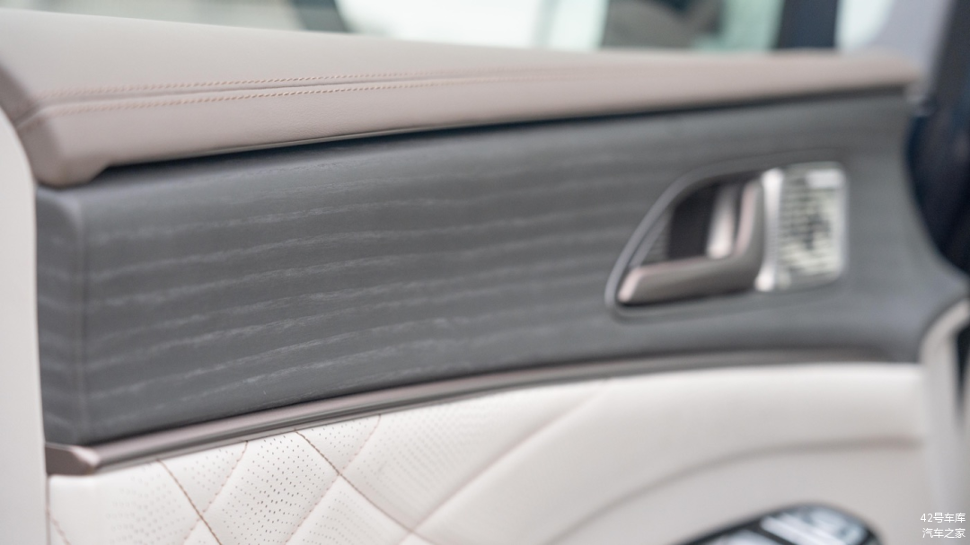 车门上部采用了深色木纹饰板,下部为皮质包裹软性材料。