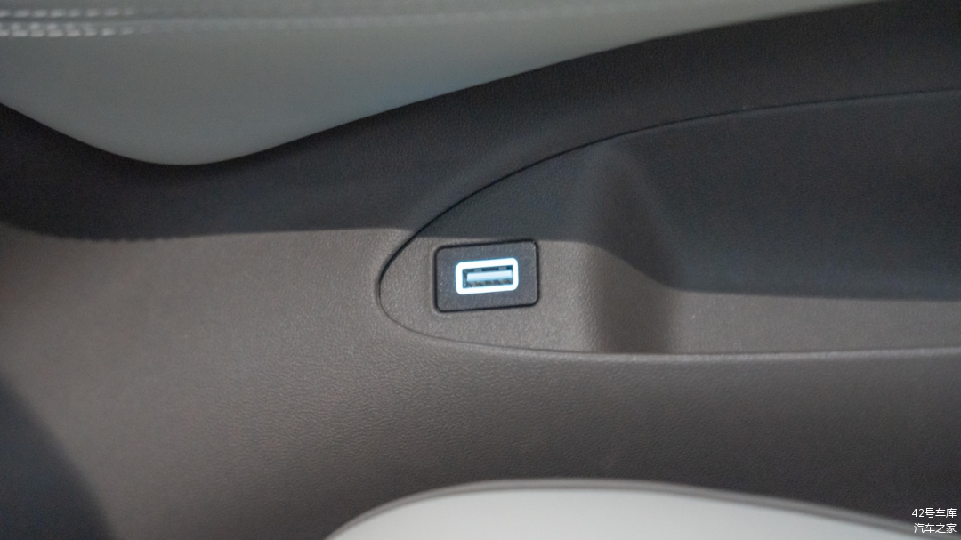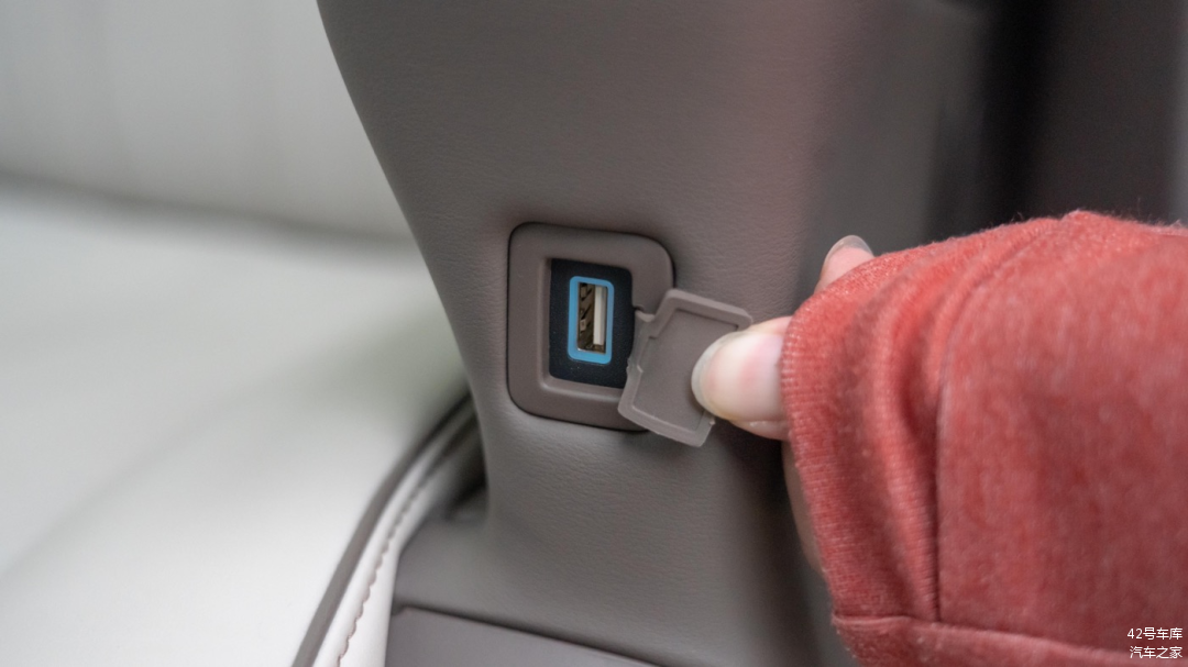 两个座椅扶手下方各有一个 Type A 充电接口,接口上方有硅胶保护盖。