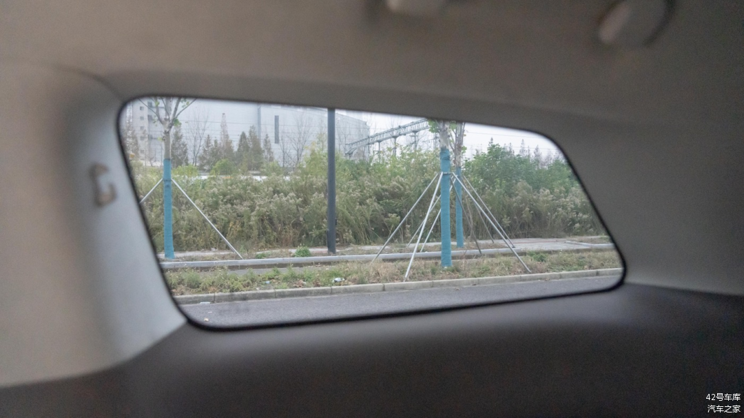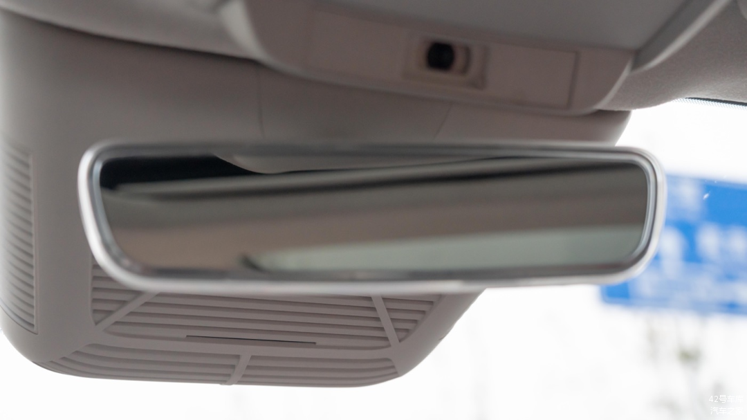 内后视镜没有采用流媒体后视镜,但实际开车时后挡风玻璃视野还算不错。上方有一个车内摄像头可用于车内自拍,同样支持物理关闭。