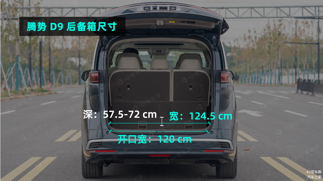 在大家的固有印象中, MPV 由于更照顾车内人员的乘坐体验,后备箱空间一般不会太大。腾势 D9 的后备箱尺寸如下。