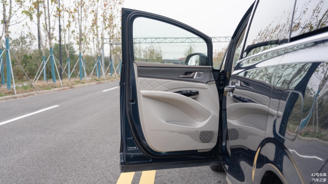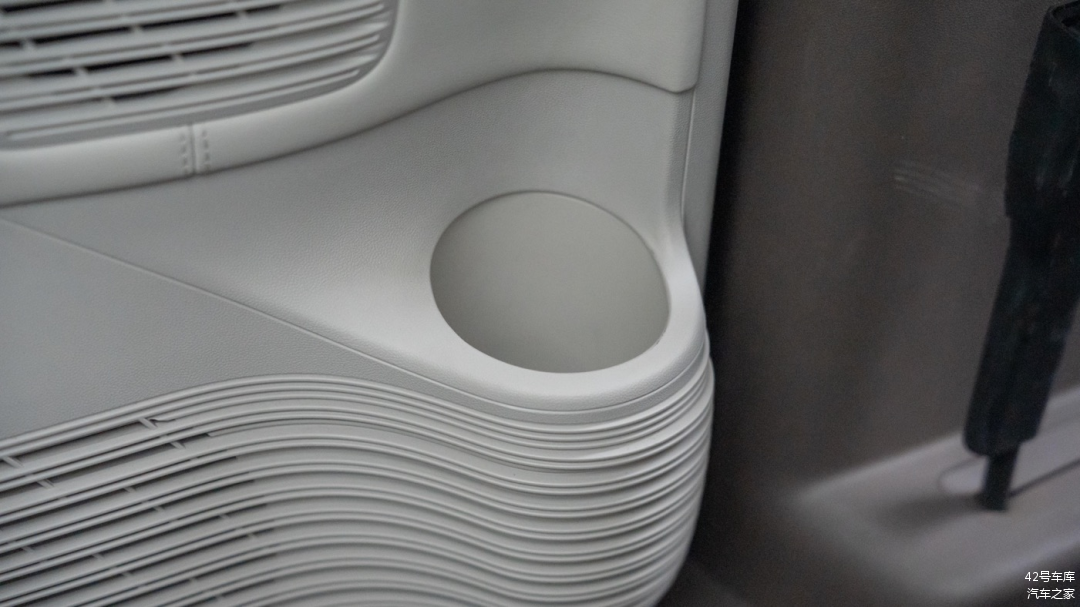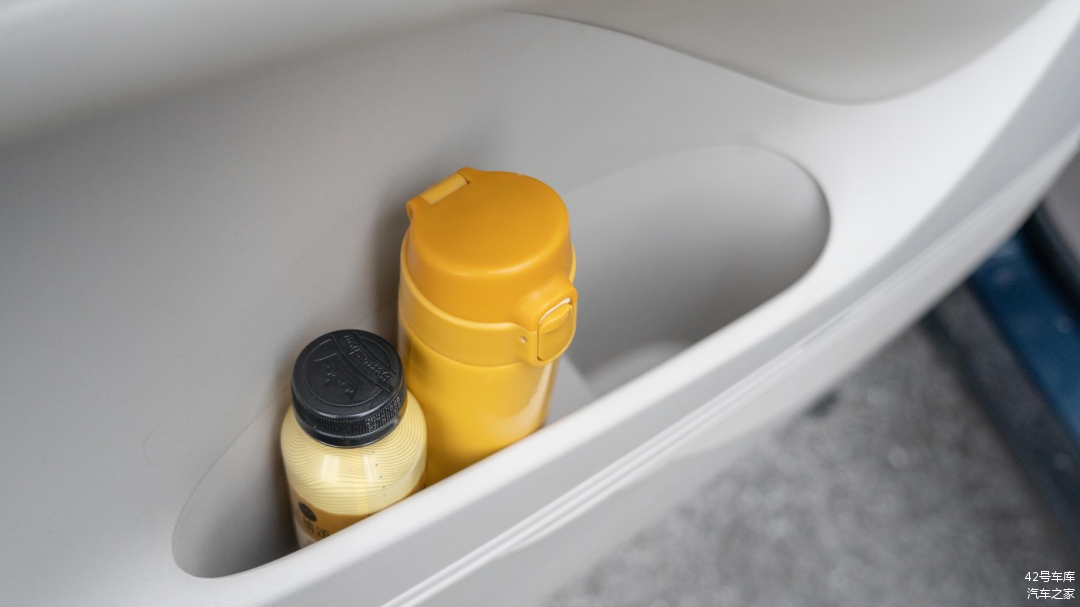 门板上的储物空间足够大,前部设计了专门的水杯放置位置,可以看到比常规的门板储物空间要下陷一些。但这辆车的坐姿较高,真的需要去拿那个位置的水杯,需要稍稍弯腰才可以。除了水杯放置位,剩余空间至少还能放下两瓶水。