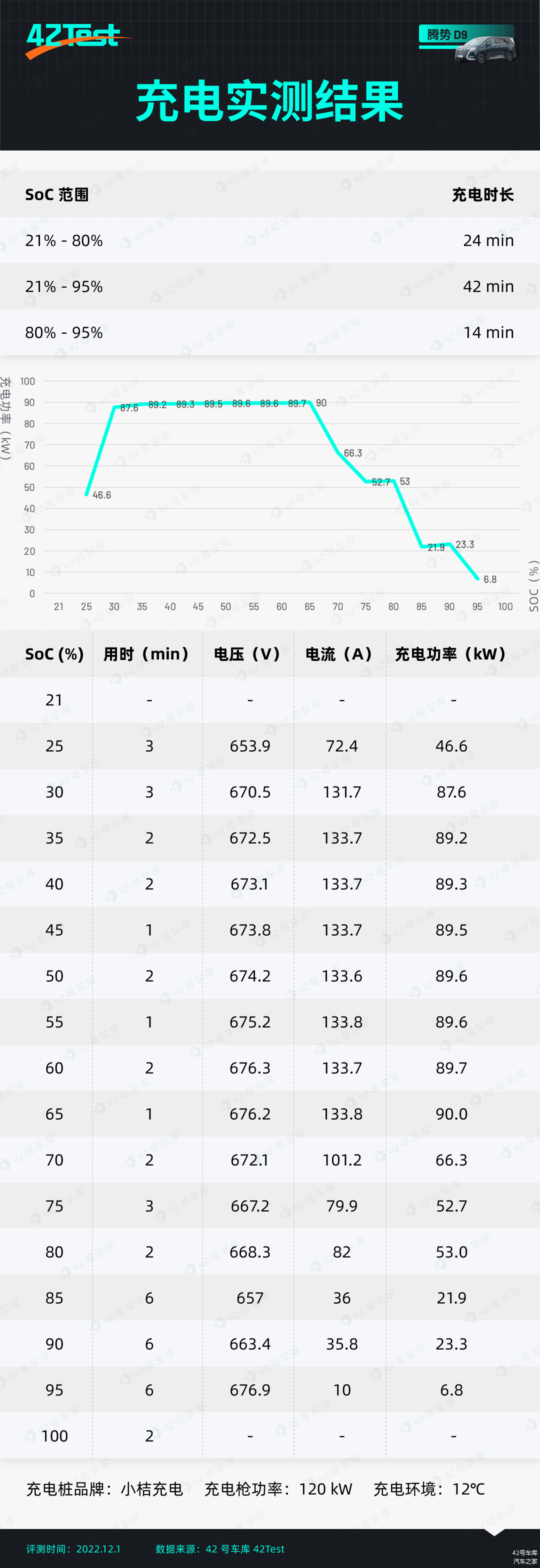 这次我们依然来到了最大充电功率 120 kW 的小桔充电桩进行腾势 D9 的充电测试,测试过程中车辆较少没有出现分流情况,结果让人出乎意料。