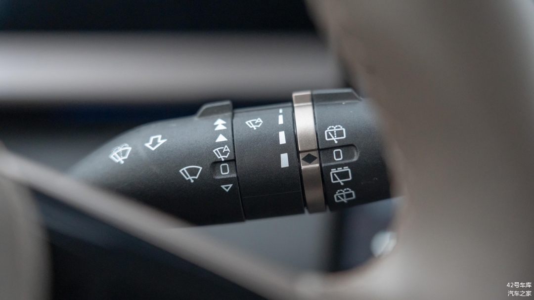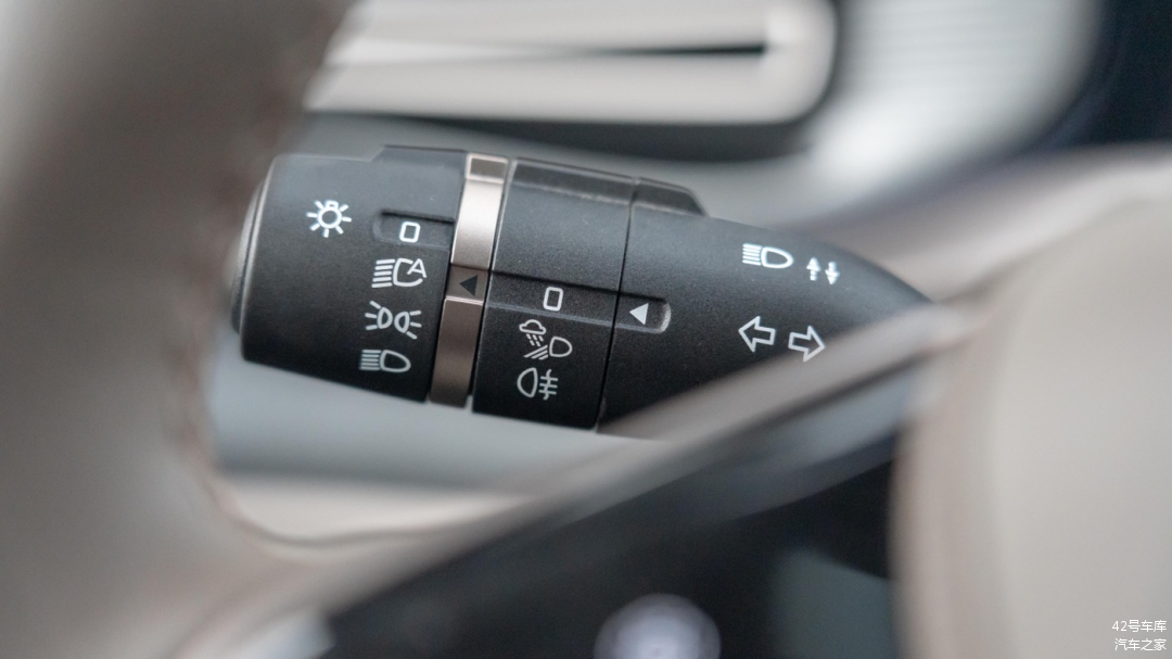 方向盘两侧的档杆与大部分燃油车一致,左侧档杆为灯光控制相关功能,右侧档杆为雨刷控制相关功能。