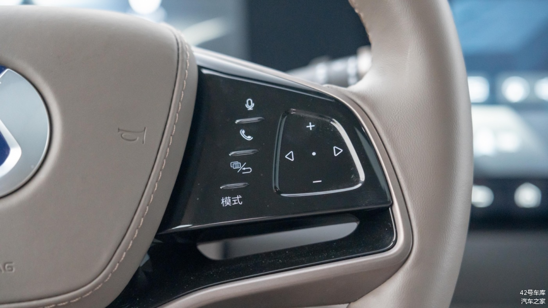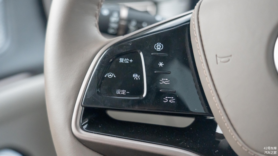 方向盘握感之前提到了较为饱满,两侧按键手感一般。