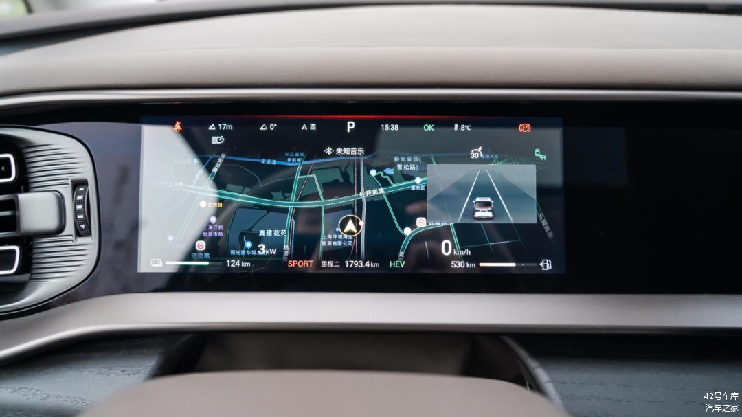 我们这辆顶配混动车型配备了 HUD 功能,实测除了显示时速以外,在开启导航后还可以显示导航信息 。不过遗憾的是,HUD 无法显示 Auto Hold 之类的信息,还是需要低头看仪表屏确认。