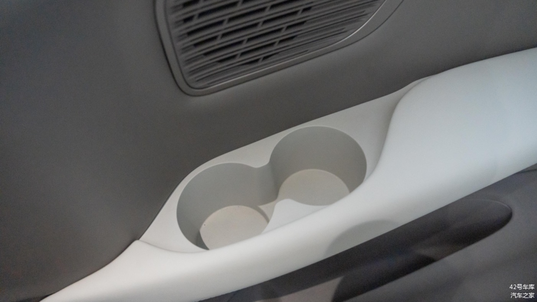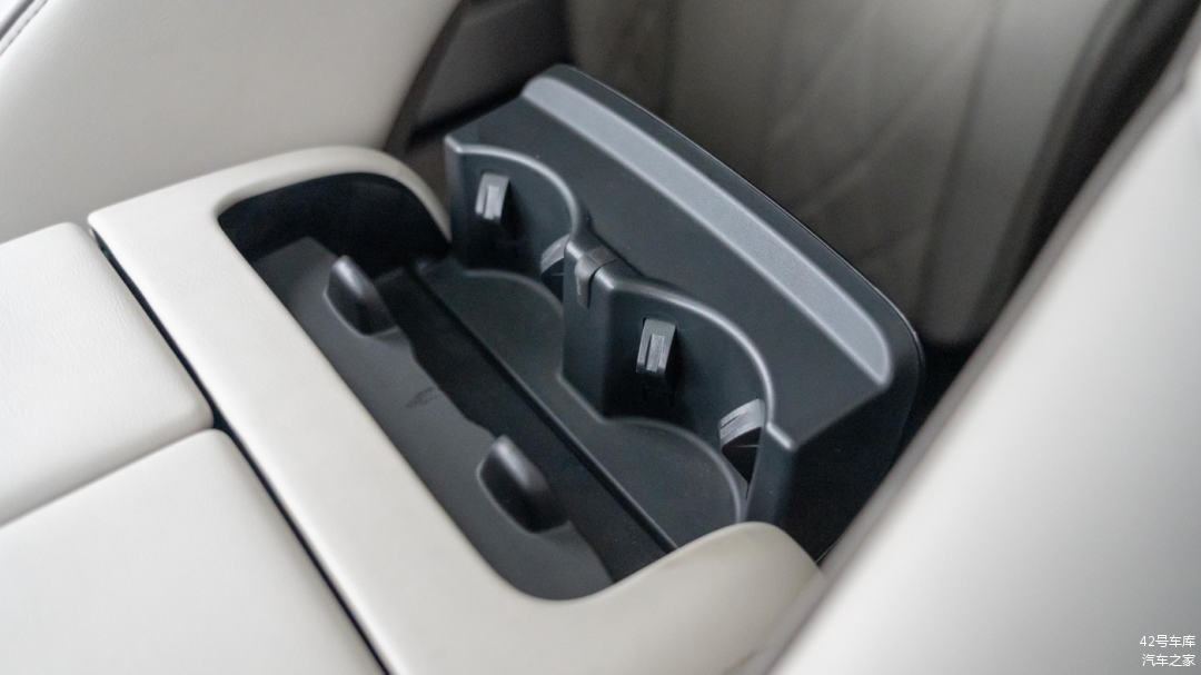 扶手箱末端的黑色盖板打开后还有两个杯架,可供第二排乘客使用。