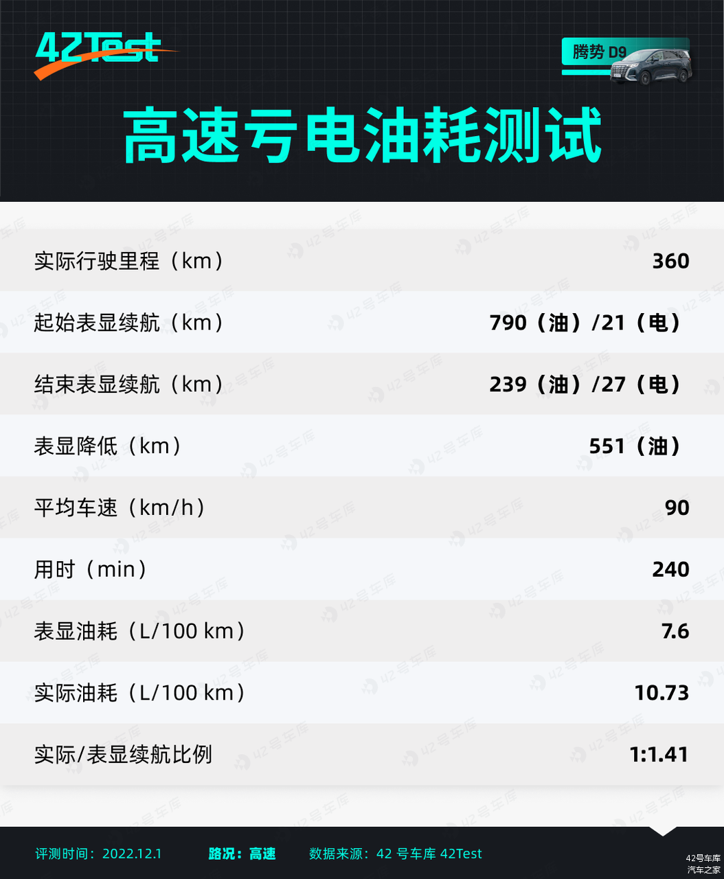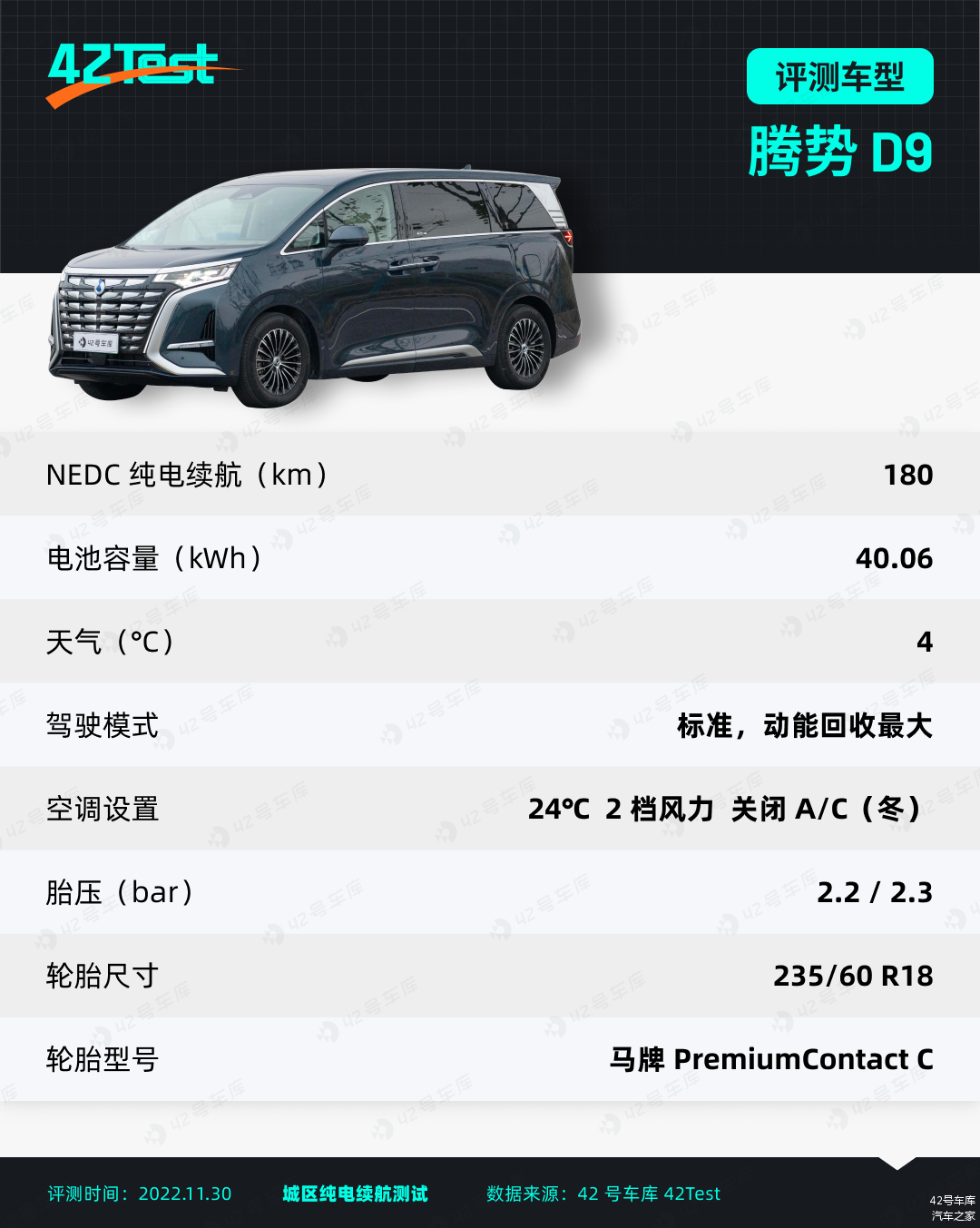 这次我们把腾势 D9 放到了我们 42Test 测试中,对这辆车进行了更为详细的测试,同时这也是第一辆进行 42Test 测试的 MPV 车型。