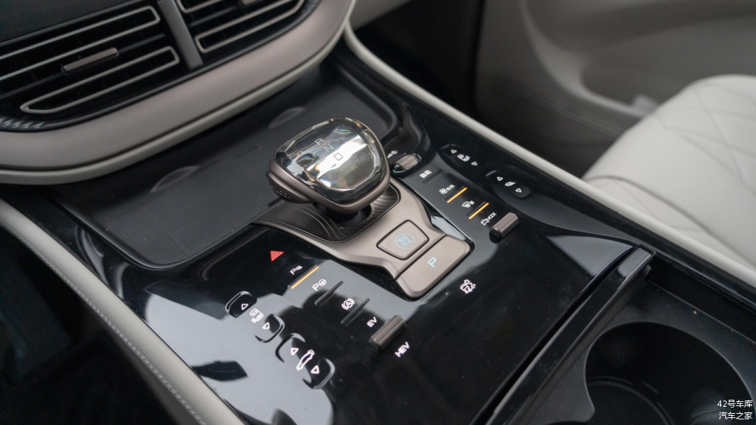 中控区域依然采用了我不喜欢的黑色钢琴烤漆,时间长了还是会有指纹划痕等问题。档位采用了水晶档把的设计,有那么点高级感。